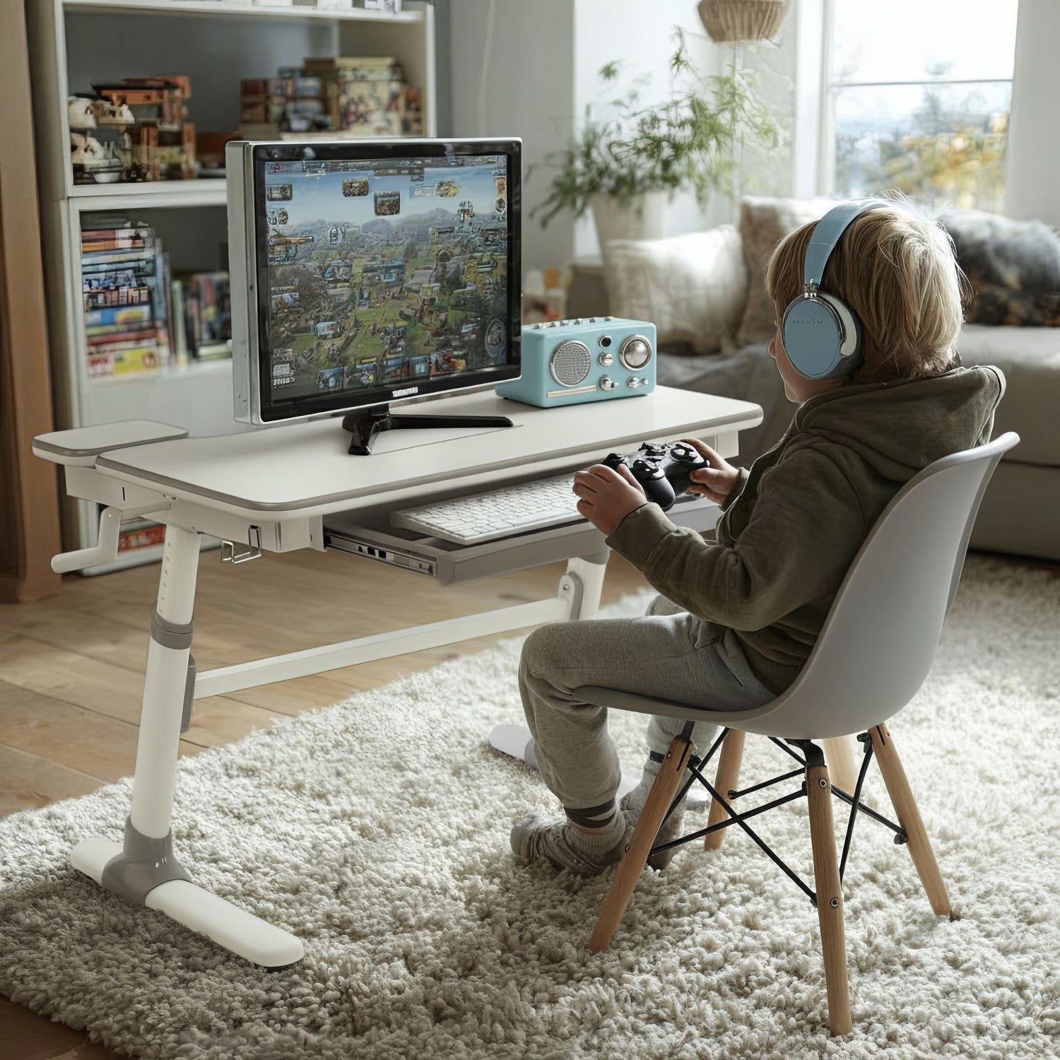 Ergonómikus íróasztal, magasságállítással, hogy gyermeke magasságához igazodjon.