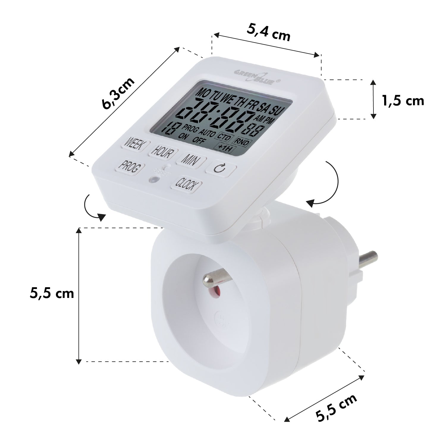 GreenBlue digitális időkapcsoló - időzítő, max. terhelés 16A, IP20, GB605 E, 2 darab