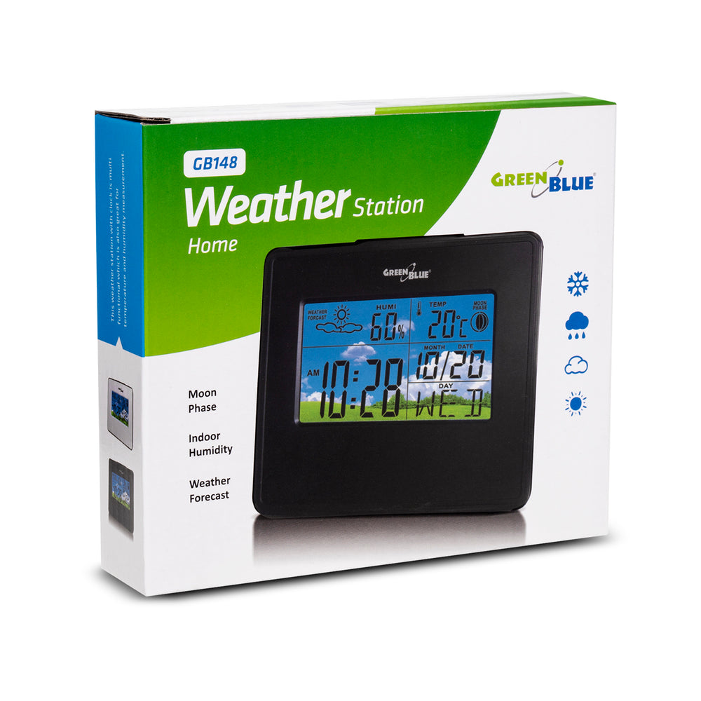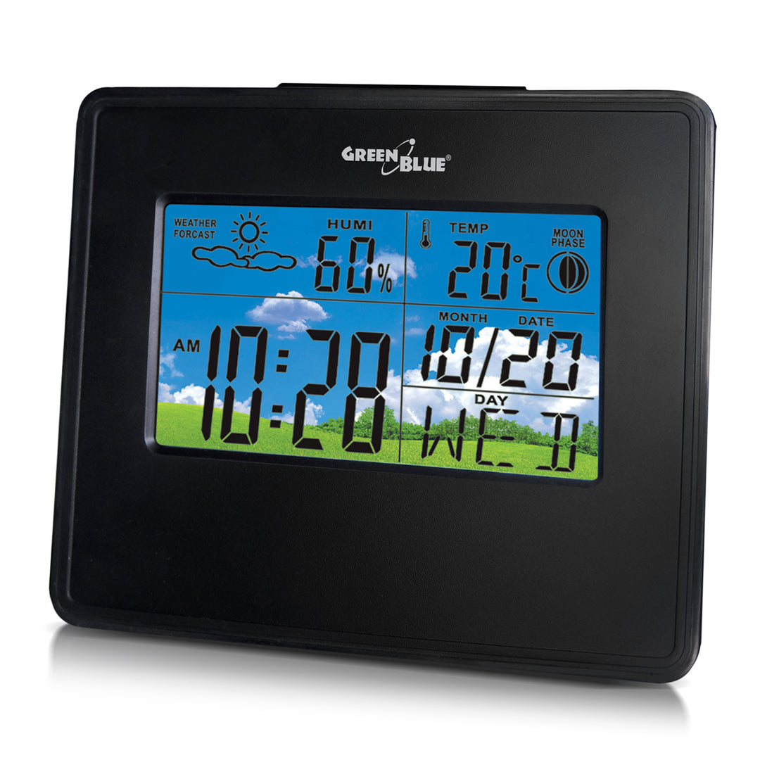 Időjárás állomás óra naptár hold fázis GreenBlue GB148B fekete