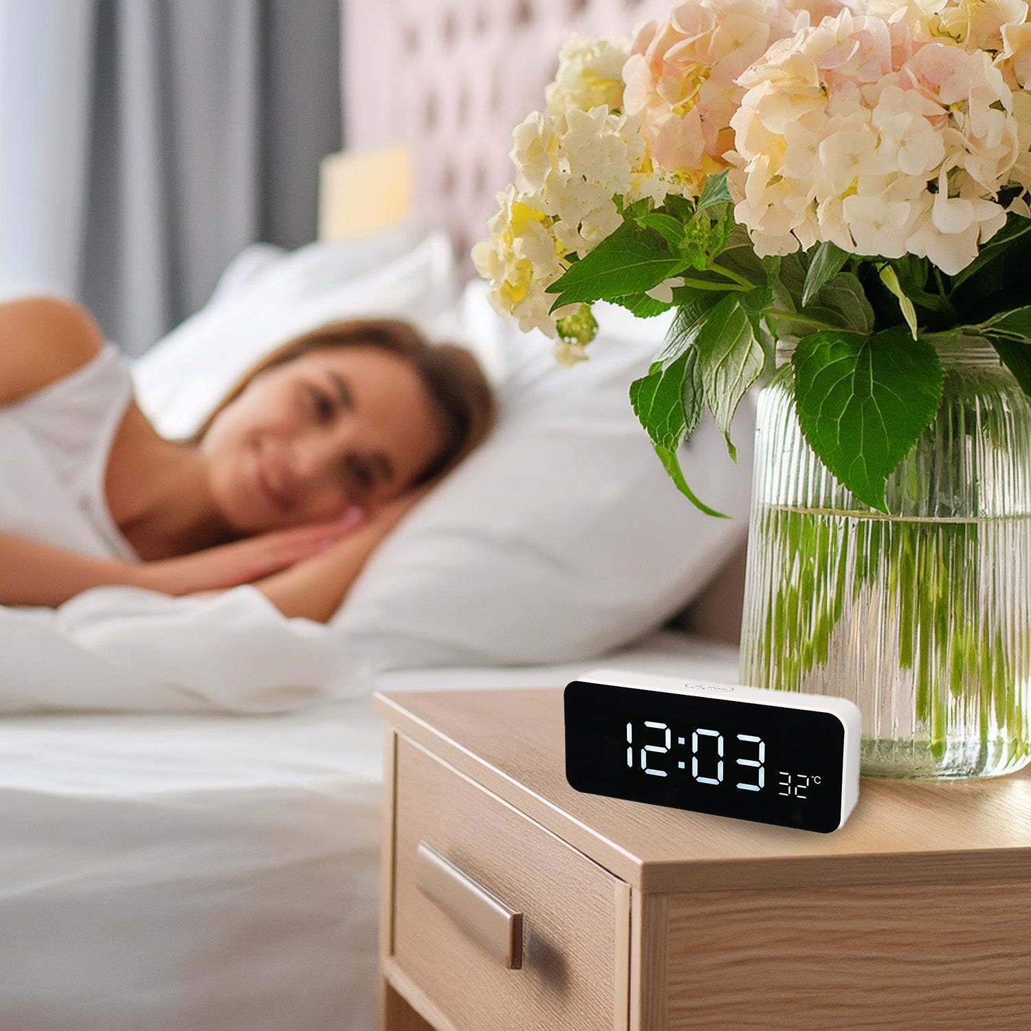 A GreenBlue GB397 egy modern készülék riasztóval és belső hőmérsékletmérő funkcióval. Az óra nagy, könnyen olvasható képernyővel rendelkezik, amely tökéletesen illeszkedik bármilyen belső térbe, legyen az klasszikus vagy modern stílusban berendezett. A nagyméretű számjegyek még távolról is biztosítják az olvashatóságot, a beépített érzékelő pedig lehetővé teszi a környezeti hőmérséklet megjelenítését.