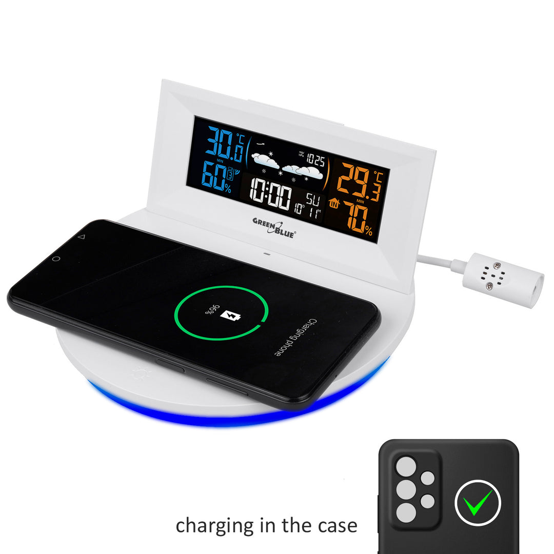- Vezeték nélküli időjárásállomás vezeték nélküli/induktív töltővel GreenBlue GB213
