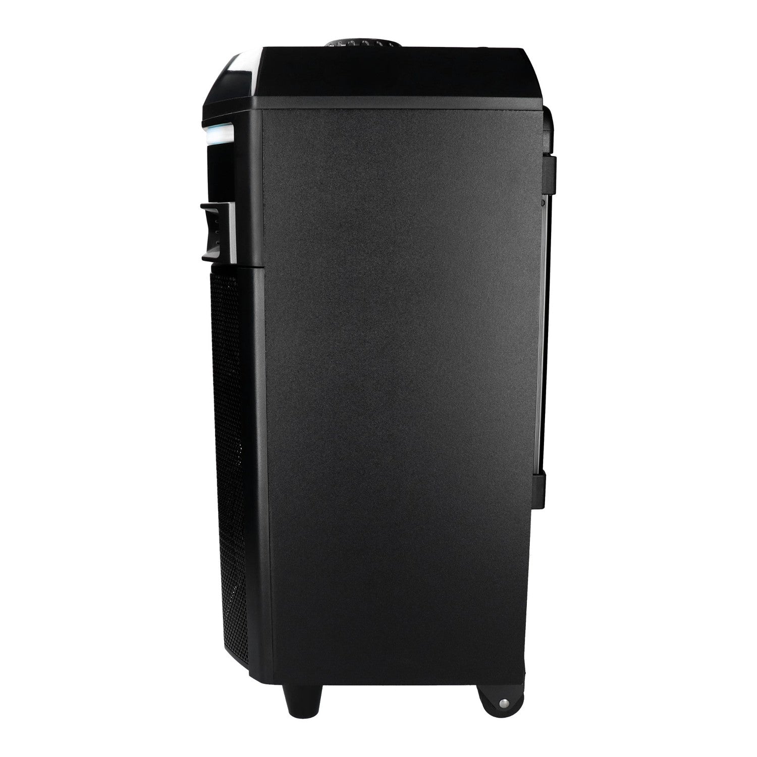 A hangszóró 12 kg alatti súlya, a kihúzható fogantyú és a szállító kerekek megkönnyítik a hangszóró helyről helyre történő mozgatását.