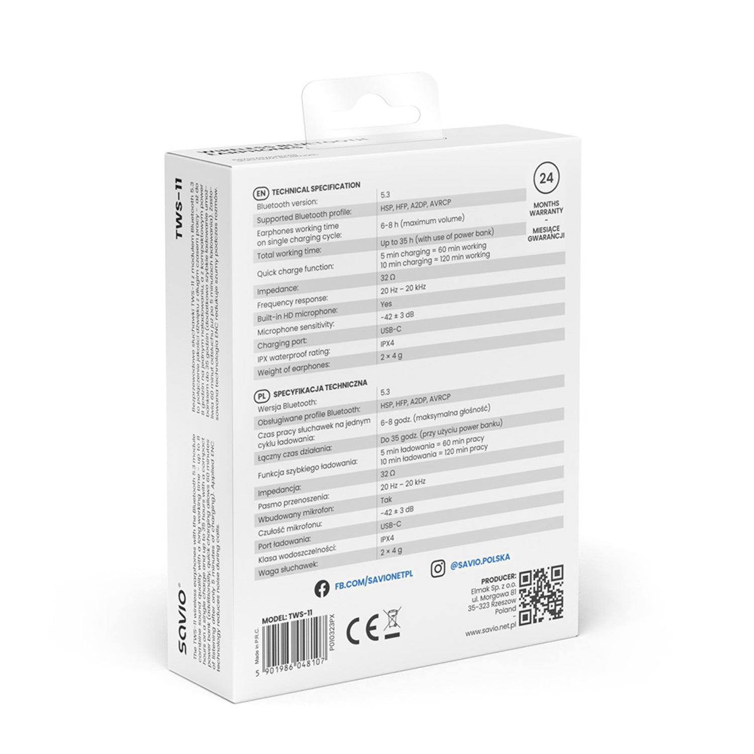 A TWS-11 fejhallgató az innovatív funkciókat nagy teljesítménnyel kombinálja, kiváló hangminőséget és stabil kapcsolatot kínál különböző eszközökkel a Bluetooth 5.3-nak köszönhetően. A beépített mikrofon lehetővé teszi, hogy kényelmesen telefonálhasson anélkül, hogy a telefonjáért kellene nyúlnia.