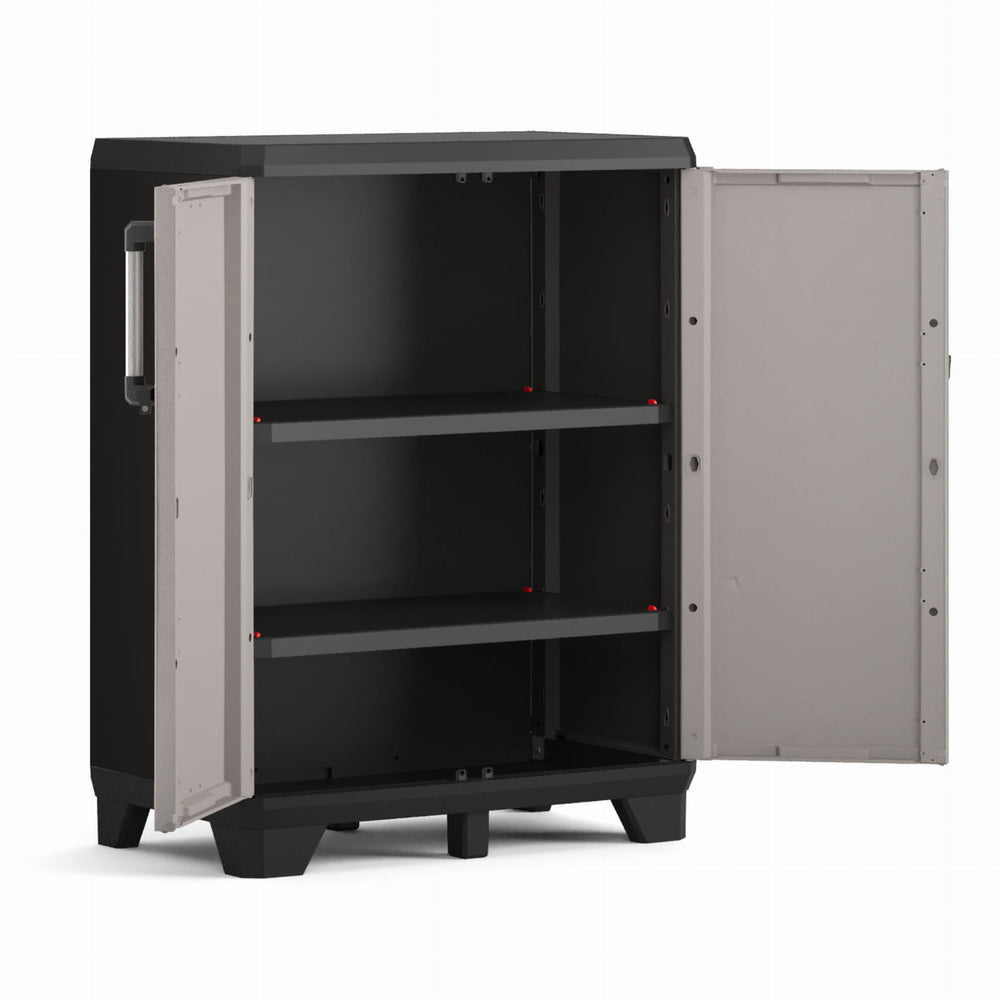 Keter alacsony szekrény, állítható polcok, megerősített szerkezet, szín: szürke/fekete, Pro