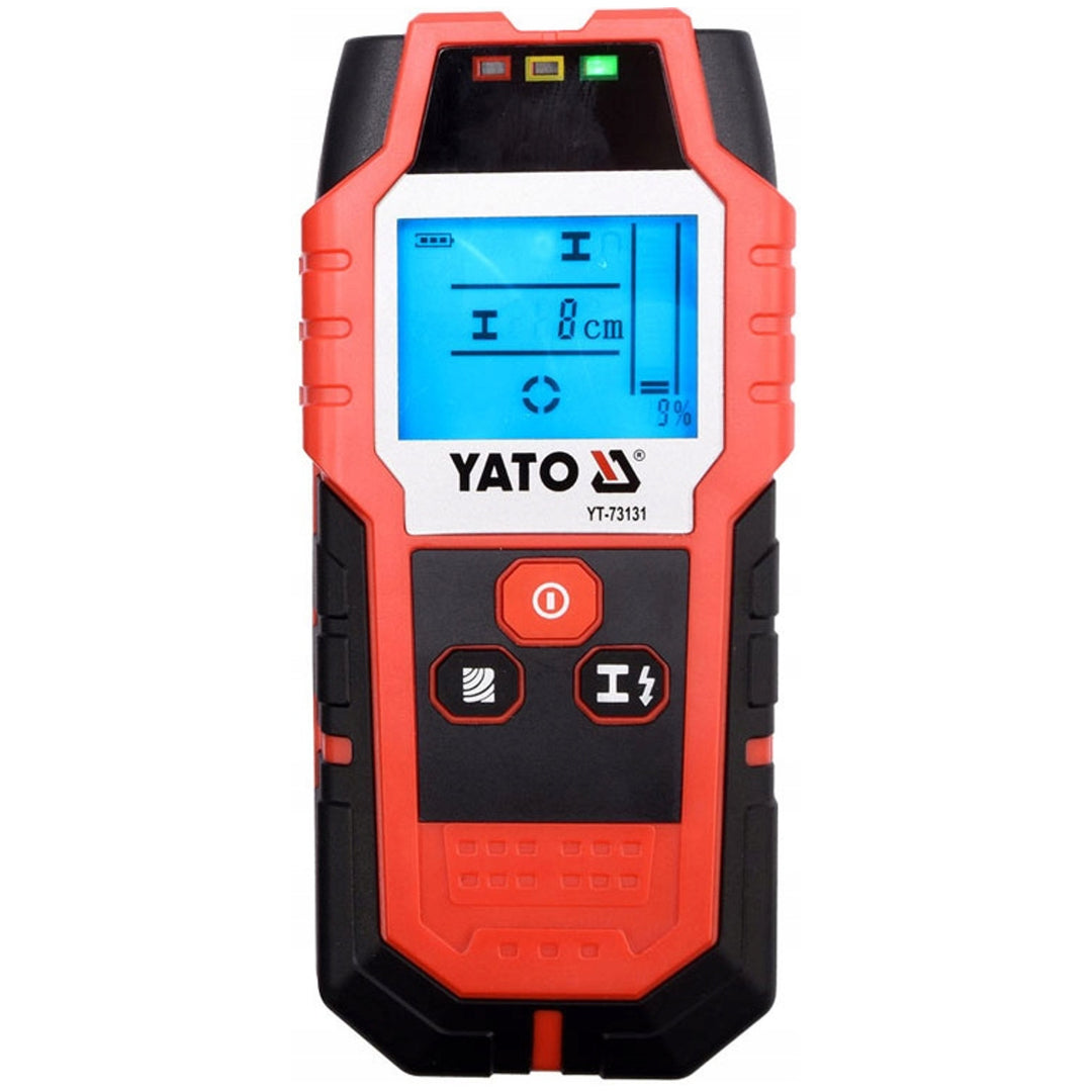 Professzionális Yato kábel- és profilérzékelő, nagy kijelző LED háttérvilágítással, fedéllel, hangjelzéssel és három jelző LED-del, érzékelési erősség beállítással, YT-73131