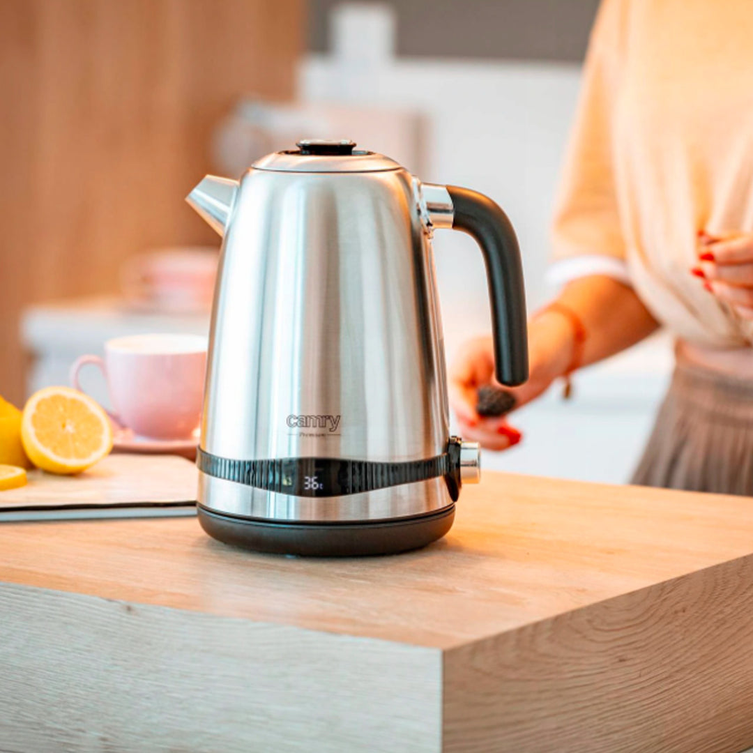 1,7 literes acél vízforraló LCD kijelzővel és hőmérséklet-szabályozással Camry