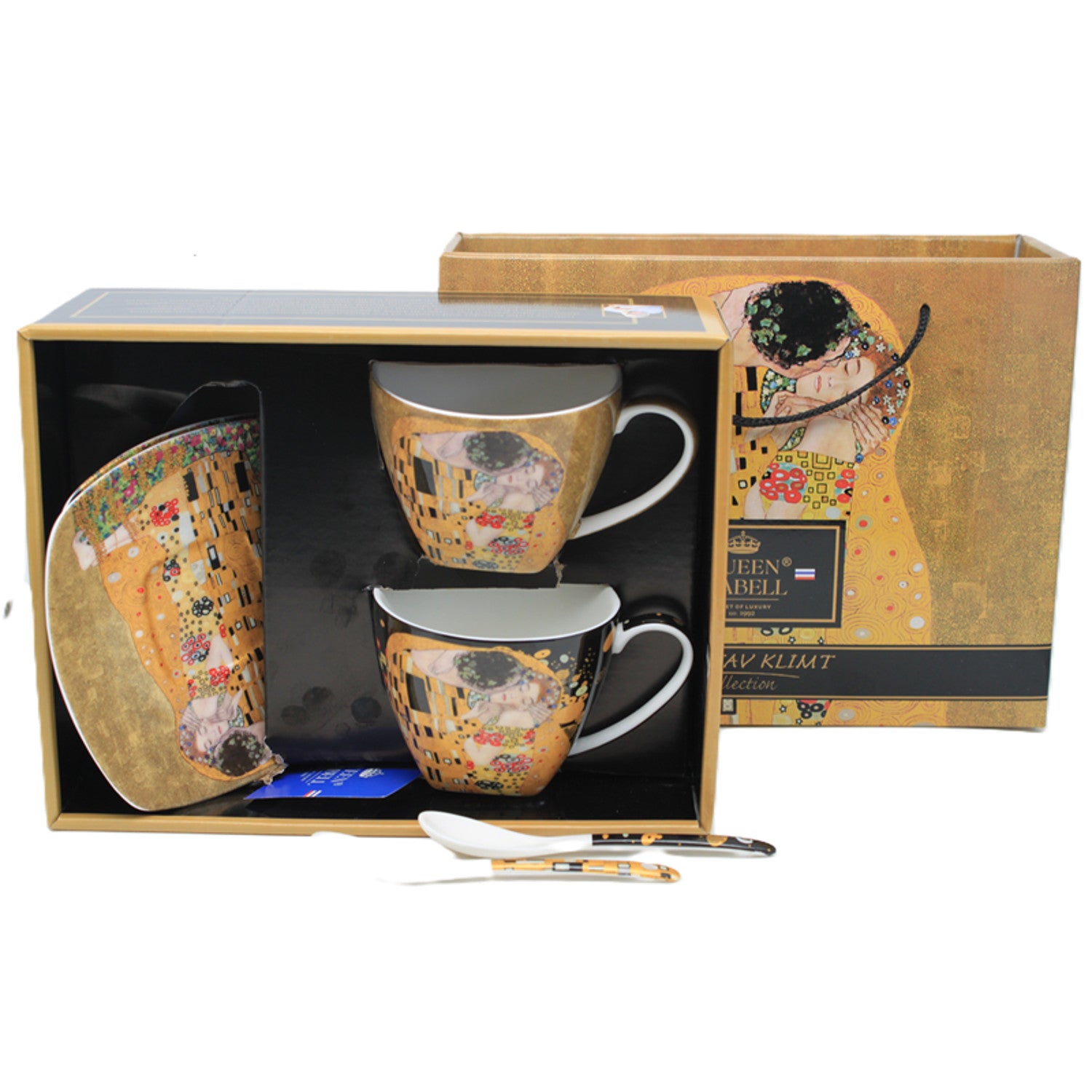 2 db Isabell királynő porcelán csésze, Klimt csók motívum, teáskanál, 250ml, W25KL60-2-19000