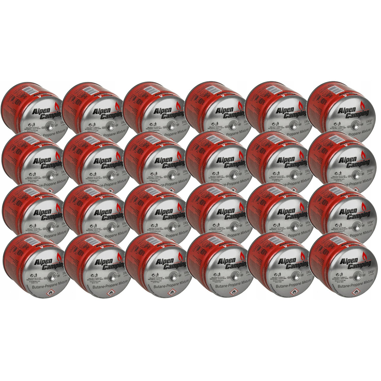 24x Alpen Camping 400ml gázpatron. Tanúsítvány: 40°c-ig, GAS STOP rendszer IK006, propán-bután, tartomány -10°c és + 40°c között.