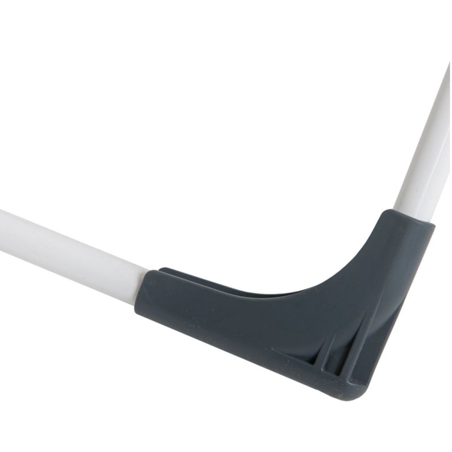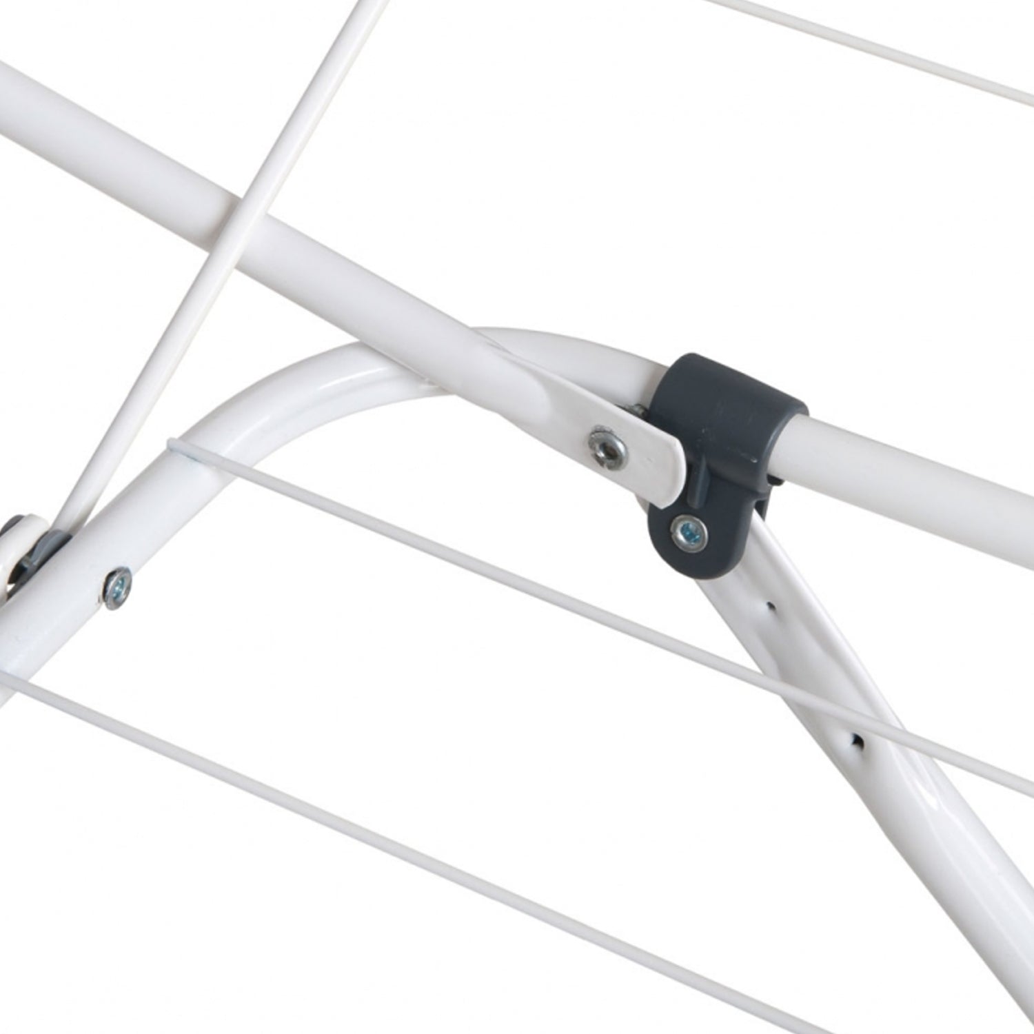 A tartós acélból készült mosószárító rendkívül stabil, UV- és időjárásálló, így biztonságosan használható a szabadban. Az acélszerkezetet csúszásgátló betétekkel látták el, az egyszerű lábösszecsukó és az önbehajtogató reteszelő mechanizmusok pedig nagy kényelmet és könnyű kibontást biztosítanak.