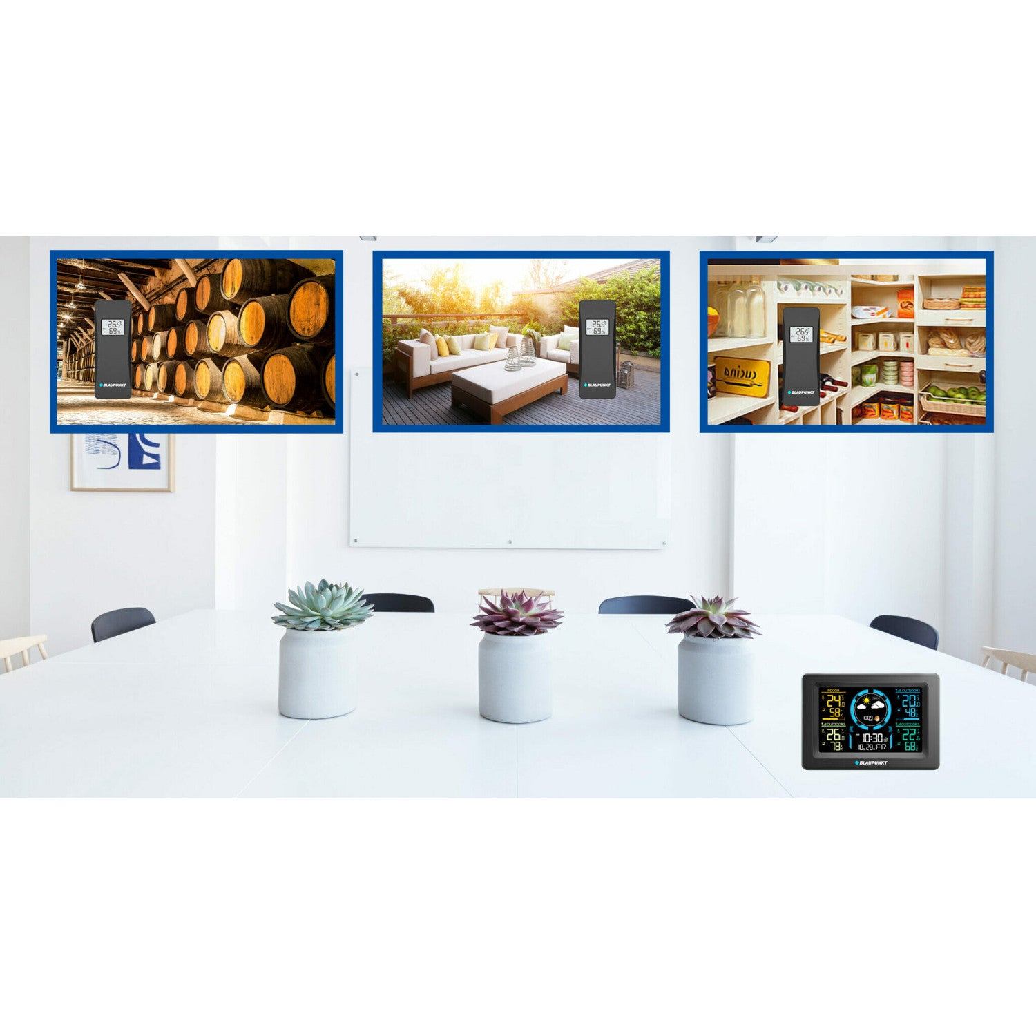 Blaupunkt időjárás-állomás, páratartalom-mérő, nyomás, előrejelzés, 3 érzékelő, WS40BK