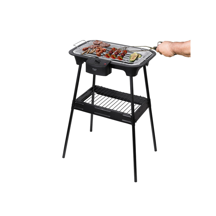 Az ADLER AD 6602 elektromos grill egy olyan termék, amely minden grillrajongónak örömet okoz! A nagy teljesítmény, az érdekes megoldások és az érdekes kialakítás teszi ezt a készüléket ideális kirándulásra, kerti partikra a ház mellett vagy akár a lakásban is! A 2400 wattos teljesítménynek köszönhetően gyorsan megsüthet egy ízletes sertésnyakat vagy kolbászt, a fokozatmentesen szabályozható hőmérséklet-szabályozás és a termosztát jelzőfénye pedig biztosítja, hogy az ételek ne égjenek meg. A grill biztonsági kapcsolóval, és kivehető fűtőtesttel van felszerelve. Egy praktikus és stabil kerti állványt, valamint a grillhez és a fűtőberendezéshez tartozó víztartályt is tartalmaz. Az AD 6602-vel egyetlen hétvége sem lesz többé olyan, mint régen!