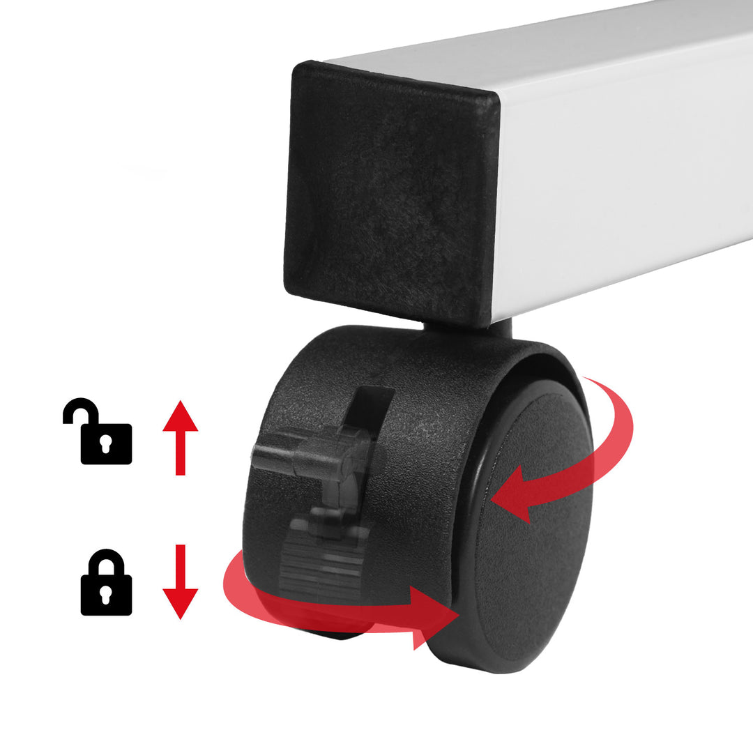 Az asztal mobilitását 6 darab zárható görgő biztosítja, így könnyen mozgatható, majd a kívánt helyen rögzíthető. Sokoldalú, funkcionális és modern megoldás, amely otthon és az irodában vagy a műteremben egyaránt jól használható.