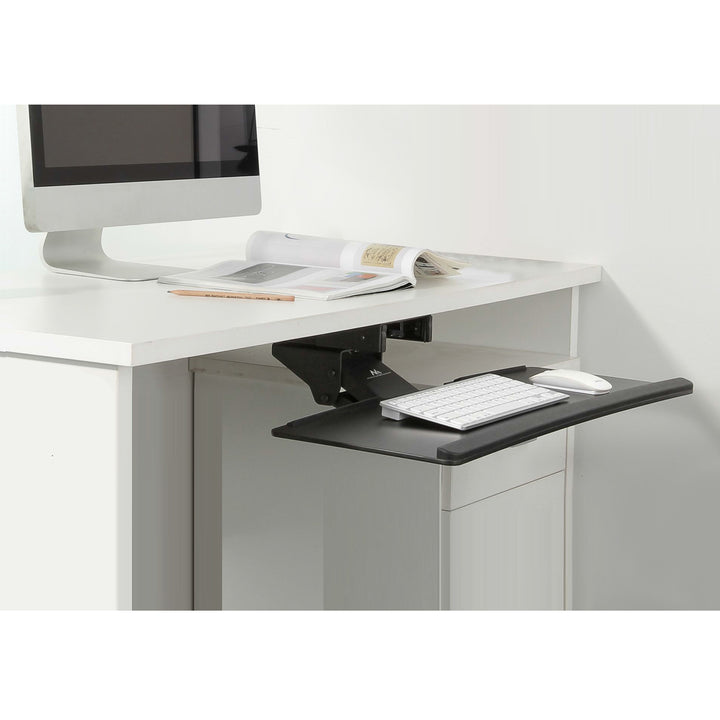 A Maclean MC-757 egy univerzális billentyűzet tartó, amely tökéletesen kiegészít minden számítógépes asztalt. Közvetlenül az asztallap alá szerelve további munkaterületet teremt, és jelentősen javítja az ergonómiát.