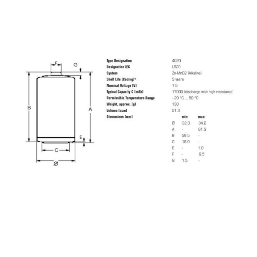20x Varta Industrial R20/D alkáli elemek fólia