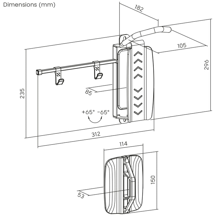 A kerékpár felfüggesztéséhez egyszerűen dugja át az első kerék felnijét a fogantyún lévő kampón. Ez a keréknél tartja a kerékpárt, így minimálisra csökkentve a váz vagy a kerékpár egyéb részeinek sérülésének kockázatát. A fogantyú stabilitást és biztonságot nyújt azáltal, hogy a kerékpárt függőleges helyzetben tartja. Miután a kerékpár felakasztásra került, a tartó 65 fokban elforgatható balra vagy jobbra, így a kerékpár közelebb tárolható a falhoz. A kampó gumiborítású, hogy megvédje a kerékpárkerék felnijét a karcolásoktól.