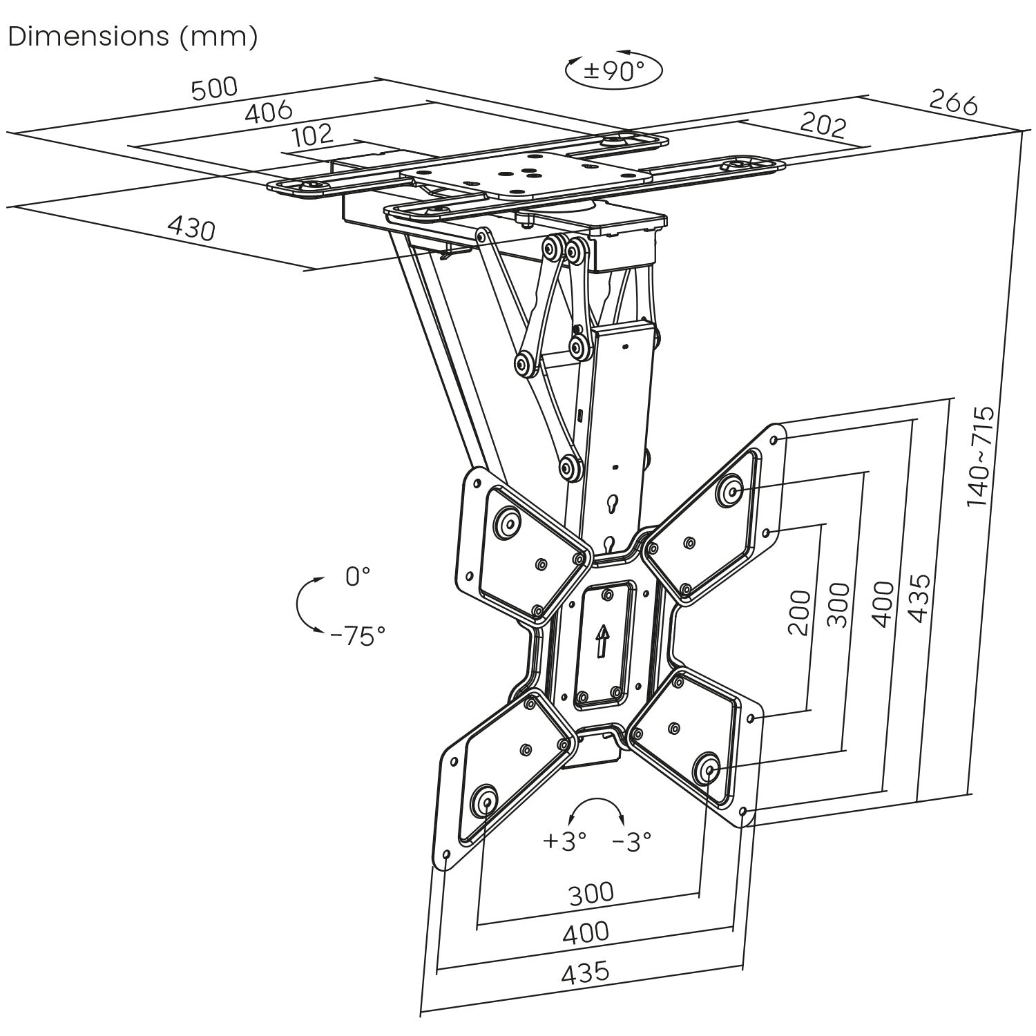 - VESA: 100x100, 200x200, 400x200, 300x300, 400x400 mm