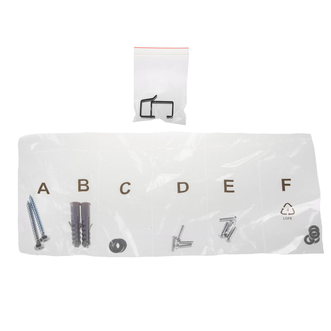 - Tartalmaz egy készlet rögzítőcsavart a falhoz, valamint a TV falra csavarozásához és szerelési útmutatót