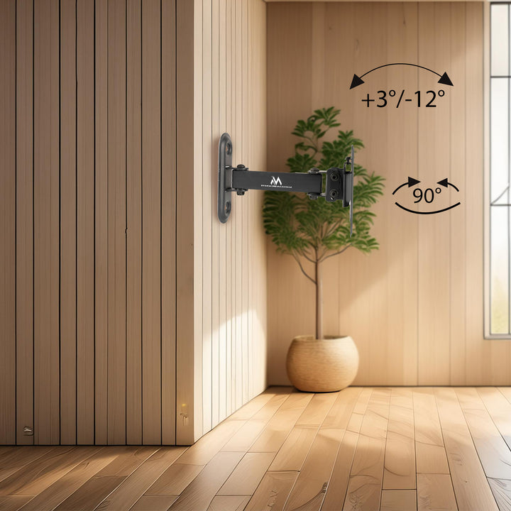 Az univerzális fali tartó különböző márkájú LCD, LED, OLED TV-k és monitorok rögzítésére szolgál, amelyek súlya legfeljebb 30 kg, képernyőátlójuk pedig 13" és 32" között van. A dőlésbeállítás lehetővé teszi a képernyő optimális elhelyezését a legjobb betekintési szög érdekében.
