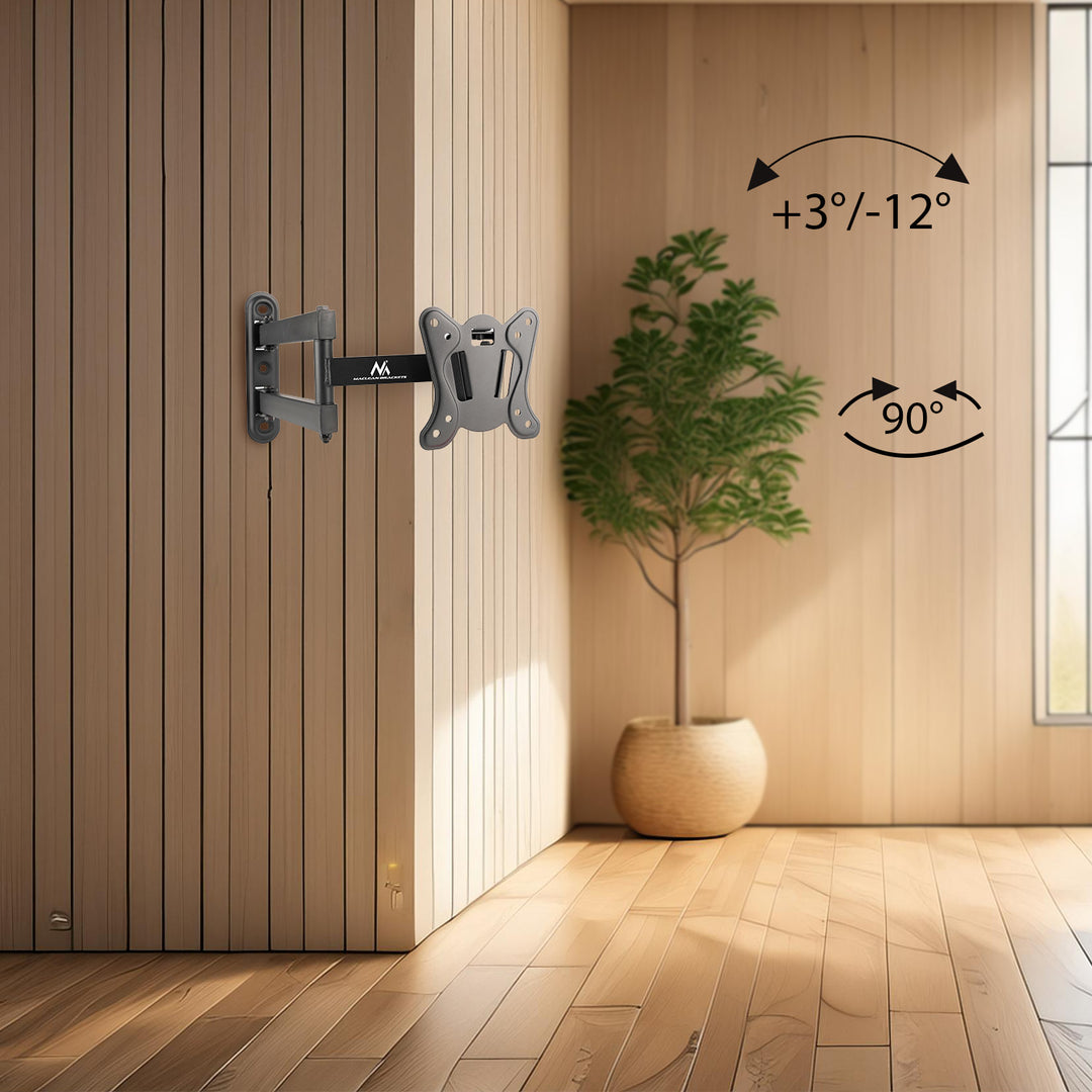 Az univerzális fali tartó különböző márkájú LCD, LED, OLED TV-k és monitorok rögzítésére szolgál, amelyek súlya legfeljebb 30 kg, képernyőátlójuk pedig 13" és 32" között van. A dőlésbeállítás lehetővé teszi a képernyő optimális elhelyezését a legjobb betekintési szög érdekében.