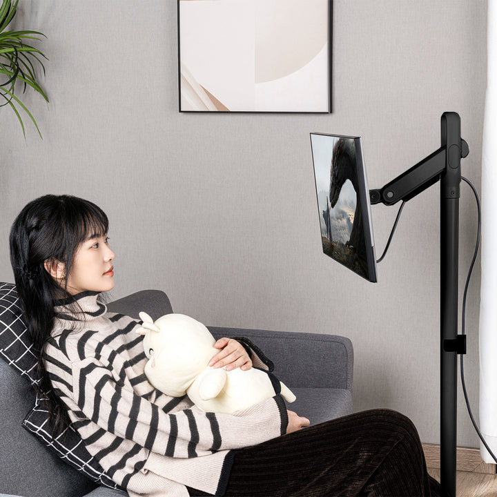 Az állványra 17 és 35 hüvelyk közötti képernyőátlóval és 75x75 vagy 100x100 mm-es rögzítőcsavar-távolsággal (VESA) rendelkező monitort vagy TV-t tudunk felakasztani.