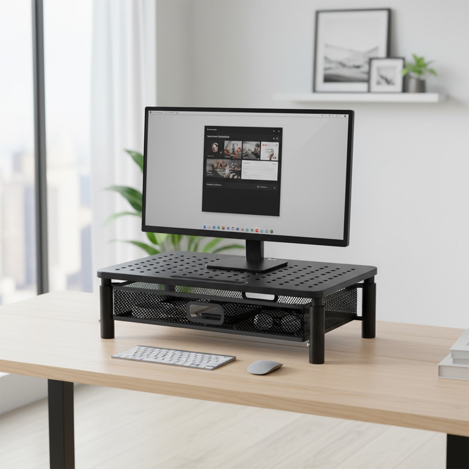 A fiókos monitor- vagy laptopállvány praktikus és ergonomikus megoldás, amely javítja a munkakomfortot és az irodai térszervezést. A 13 és 32''' közötti képernyőátlójú monitorokhoz tervezték.