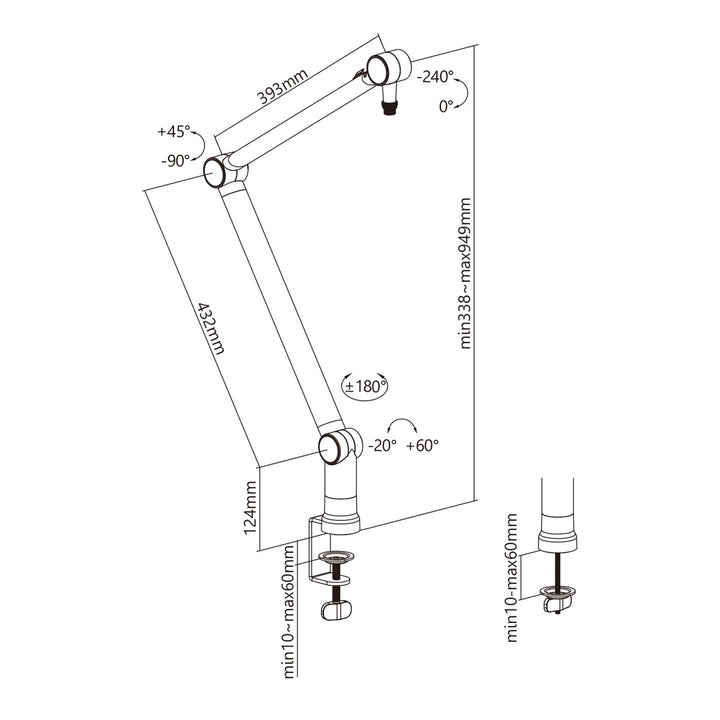 360°-ban elforgatható és két karral könnyen beállítható.