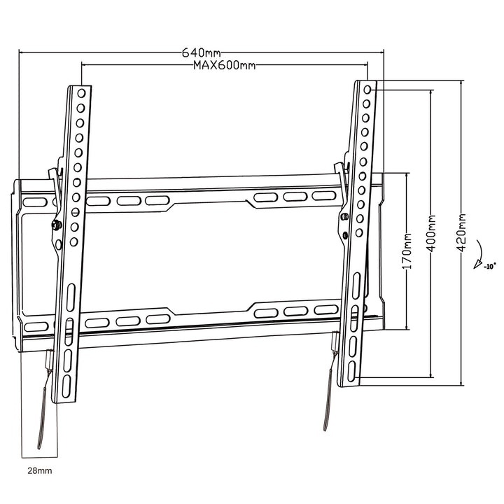 Az univerzális fali konzol különböző márkájú LCD, LED, OLED TV-k rögzítésére szolgál, amelyek súlya legfeljebb 45 kg, képernyőátlójuk pedig 32" és 80" között van. A dőlésbeállítás lehetővé teszi a képernyő optimális pozicionálását a legjobb betekintési szög érdekében.