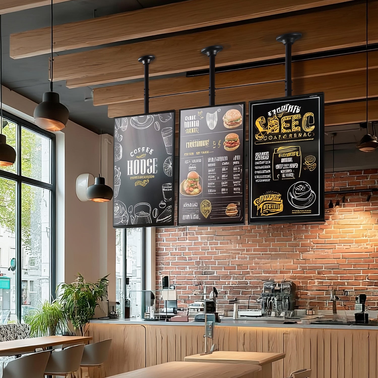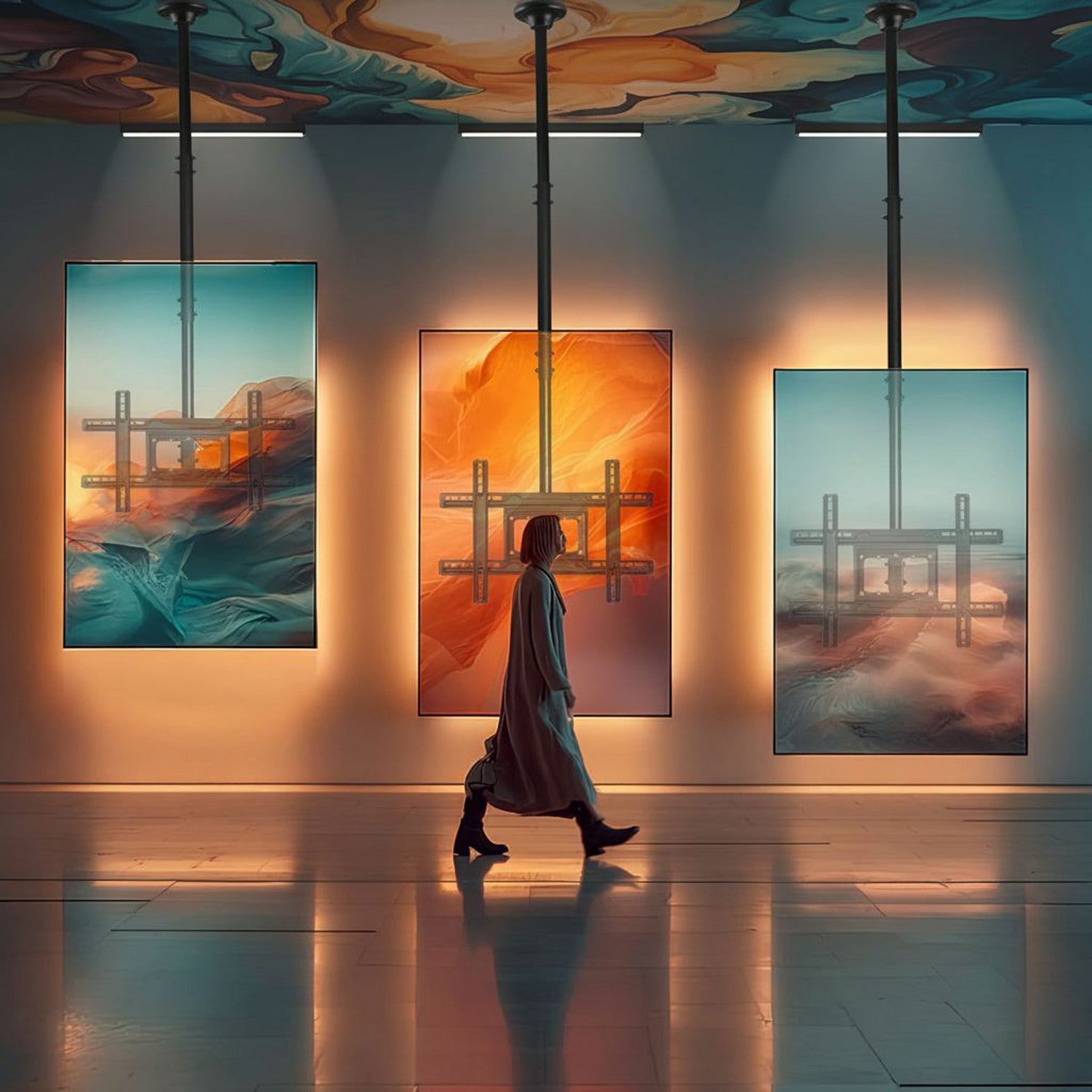 Az univerzális mennyezeti tartó különböző márkájú OLED / QLED / LED / PLASMA / LCD plazma TV-k és monitorok rögzítésére szolgál, amelyek súlya legfeljebb 50 kg, képernyőmérete pedig 23" és 100" közötti.