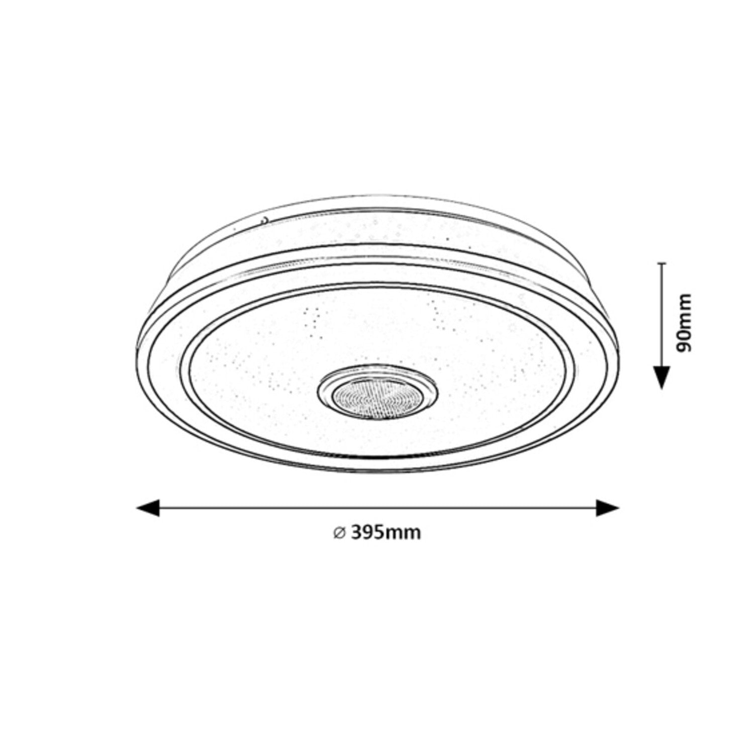 A memóriafunkciót kapcsolóval vagy távirányítóval lehet beállítani, a többi kiegészítő funkció pedig távirányítóval állítható. A mennyezeti lámpatest átmérője 395 mm, a mennyezettől való távolsága pedig 90 mm.