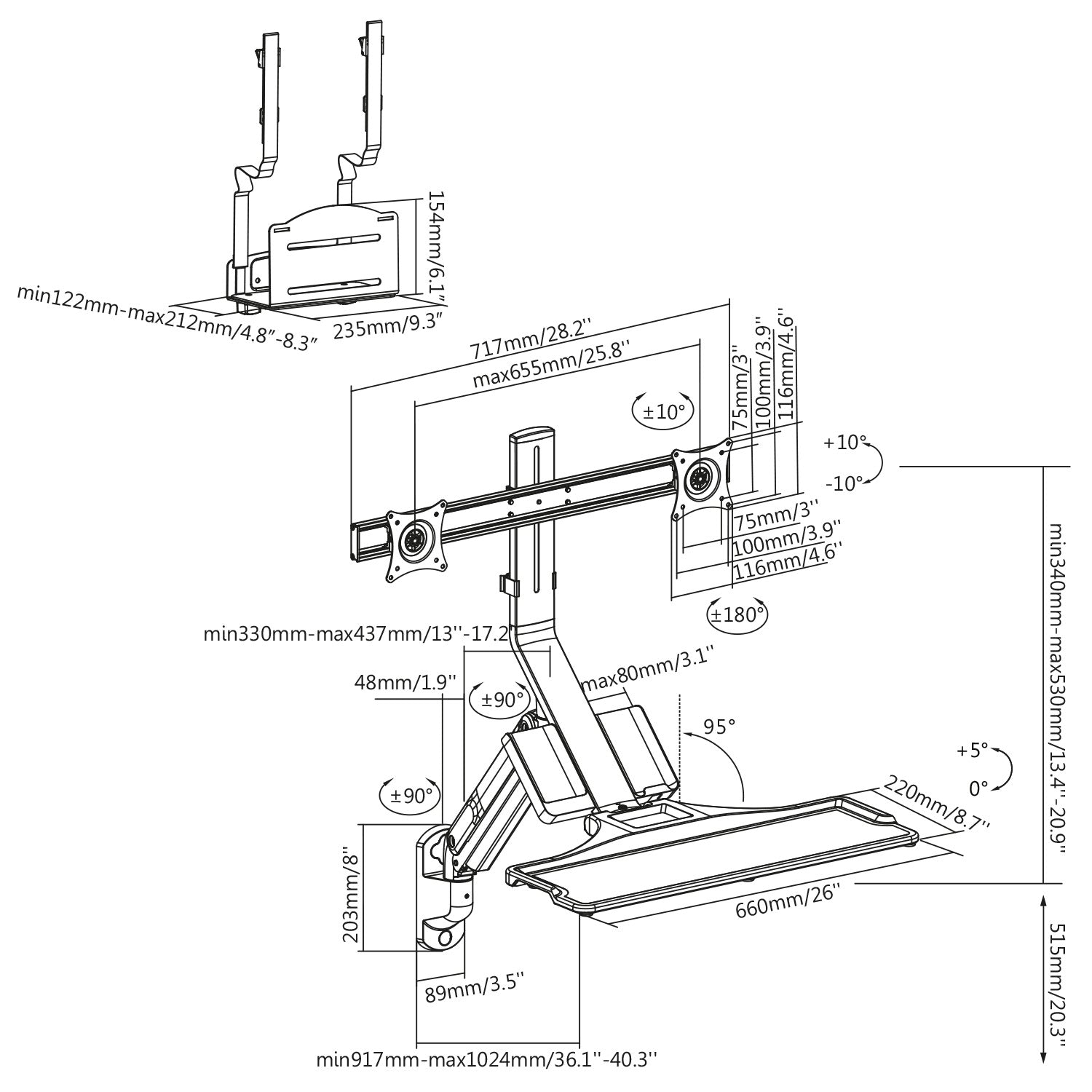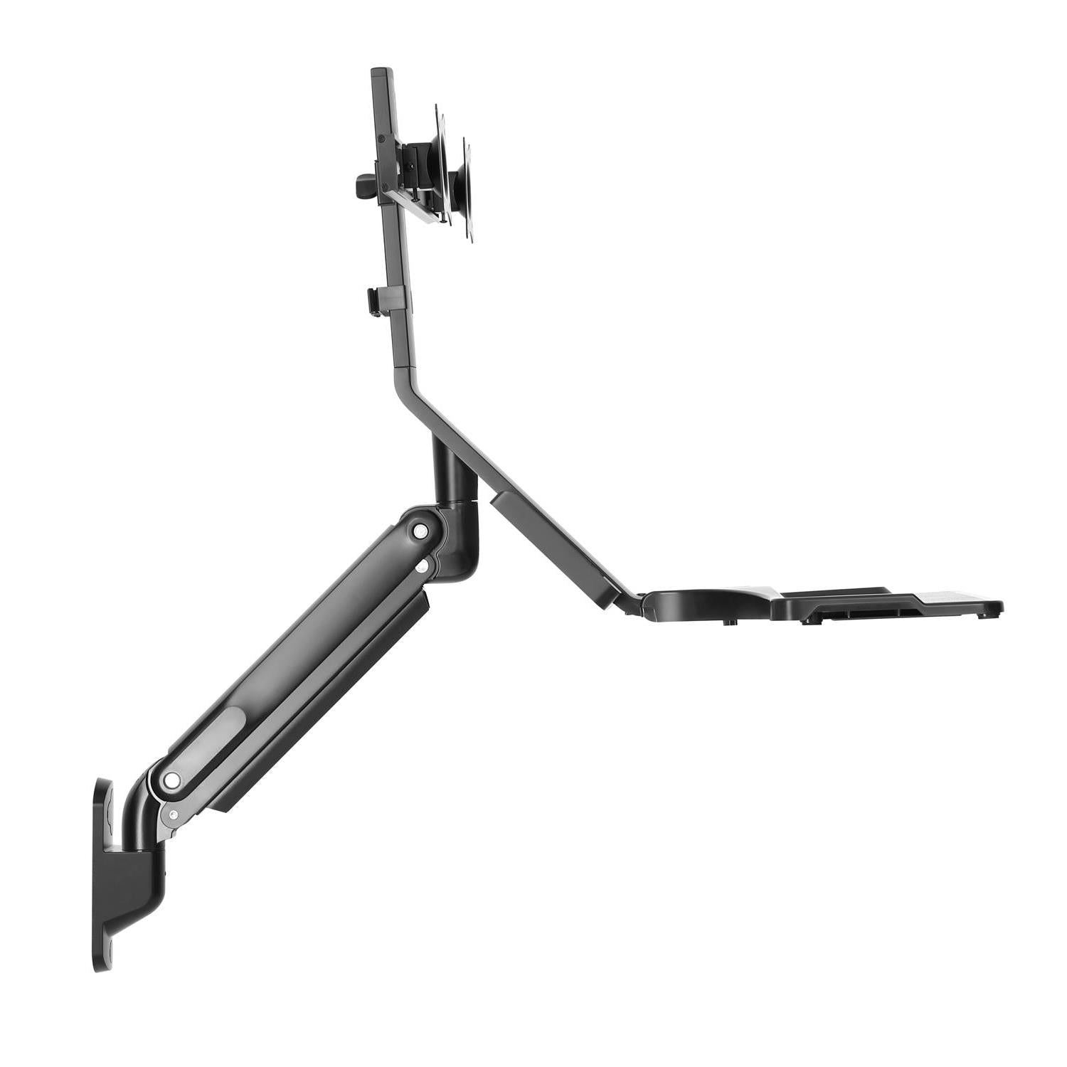 A tartó elemei tökéletesen össze lettek hangolva, így stabil és biztonságos tartást biztosít da monitorok és a billentyűzet számára. Az ülő helyzetből álló helyzetbe történő váltás nagy kényelmet biztosít a munka során, és optimalizálja az ergonómiát.
