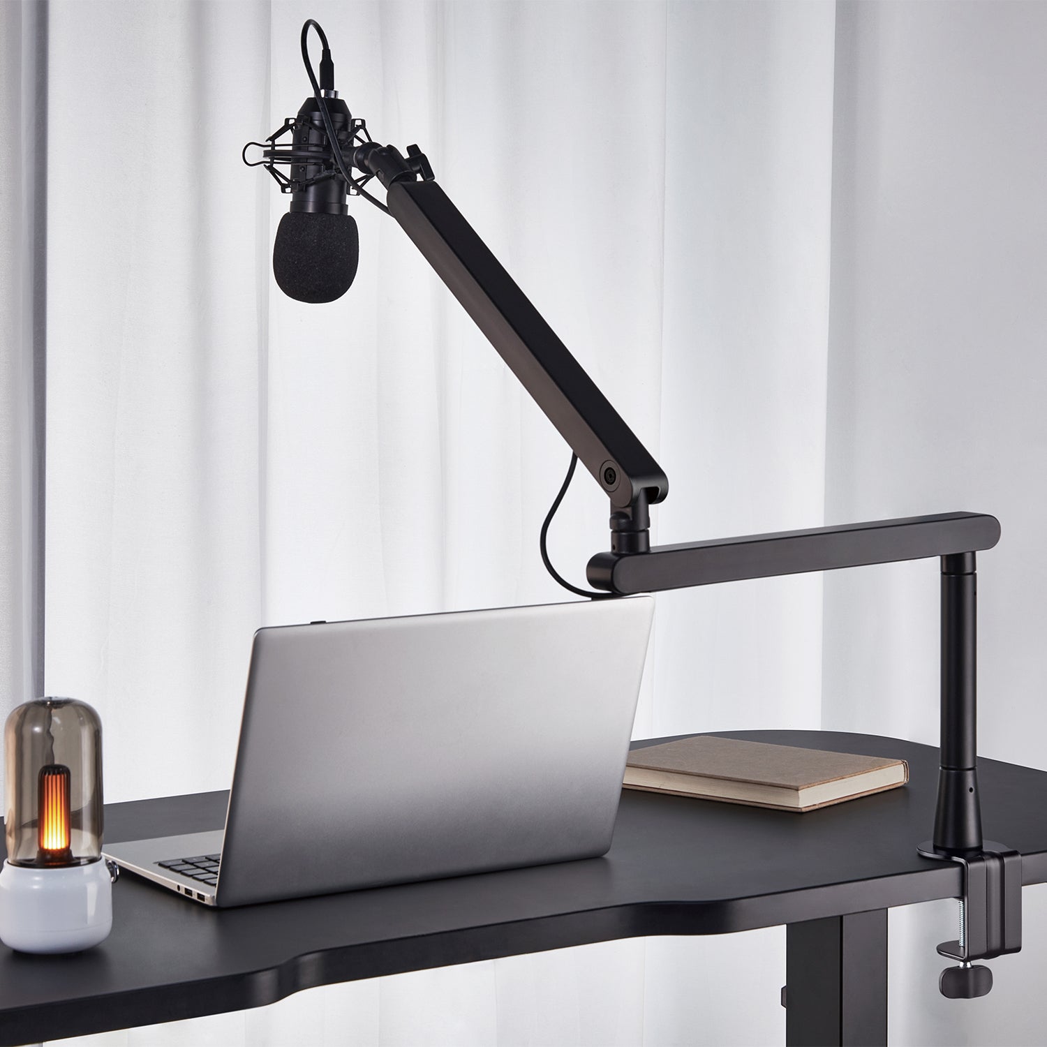 A konzol az asztallap szélére és a kábelnyílásba is rögzíthető. Az univerzális 3/8" és 5/8" meneteknek köszönhetően a tartó kompatibilis a piacon kapható legtöbb stúdiómikrofonnal. Az integrált kábelkezelő rendszer biztosítja a rendezettséget és fokozza az esztétikát.