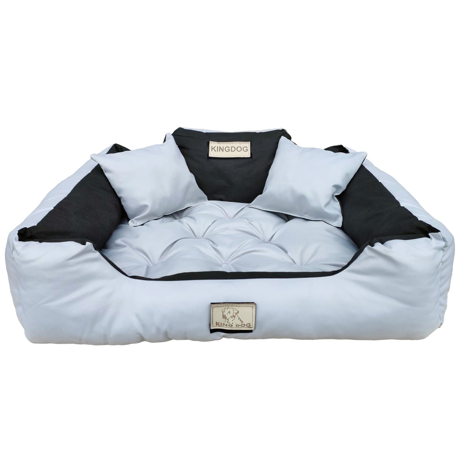 KingDog kutyaágy kutyájának vagy macskájának Méret: "XL" 115x95 Méret: "L" 100x75 Méret: "M" 75x65 PVC vízálló codura - az ágy színében. Könnyen tisztítható és szennyeződésálló szövet. Két párna - Az ágy alja könnyen tisztítható anyagból készült. A búvóhely elején a gyártó nevének foltja található. VÖLGYPÁRNA - A párna kb. 10-12 centiméter vastag, ami a legjobb barátodat, igazi királyként fogja aludni. A matrac felső oldala vízálló, az ágy színében. MEGJEGYZÉS: A vízálló anyag mindig az ágy színe. A másik oldal fekete színű. Az ágyak 7 különböző színben kaphatók: 1) sötétszürke 2) zöld 3) bézs 4) kék 5) fekete 6) piros 7) világosszürke. Minden fészket gondosan csomagolunk egy erős kartondobozba, így biztos lehet benne, hogy a csomagja sértetlenül érkezik.
