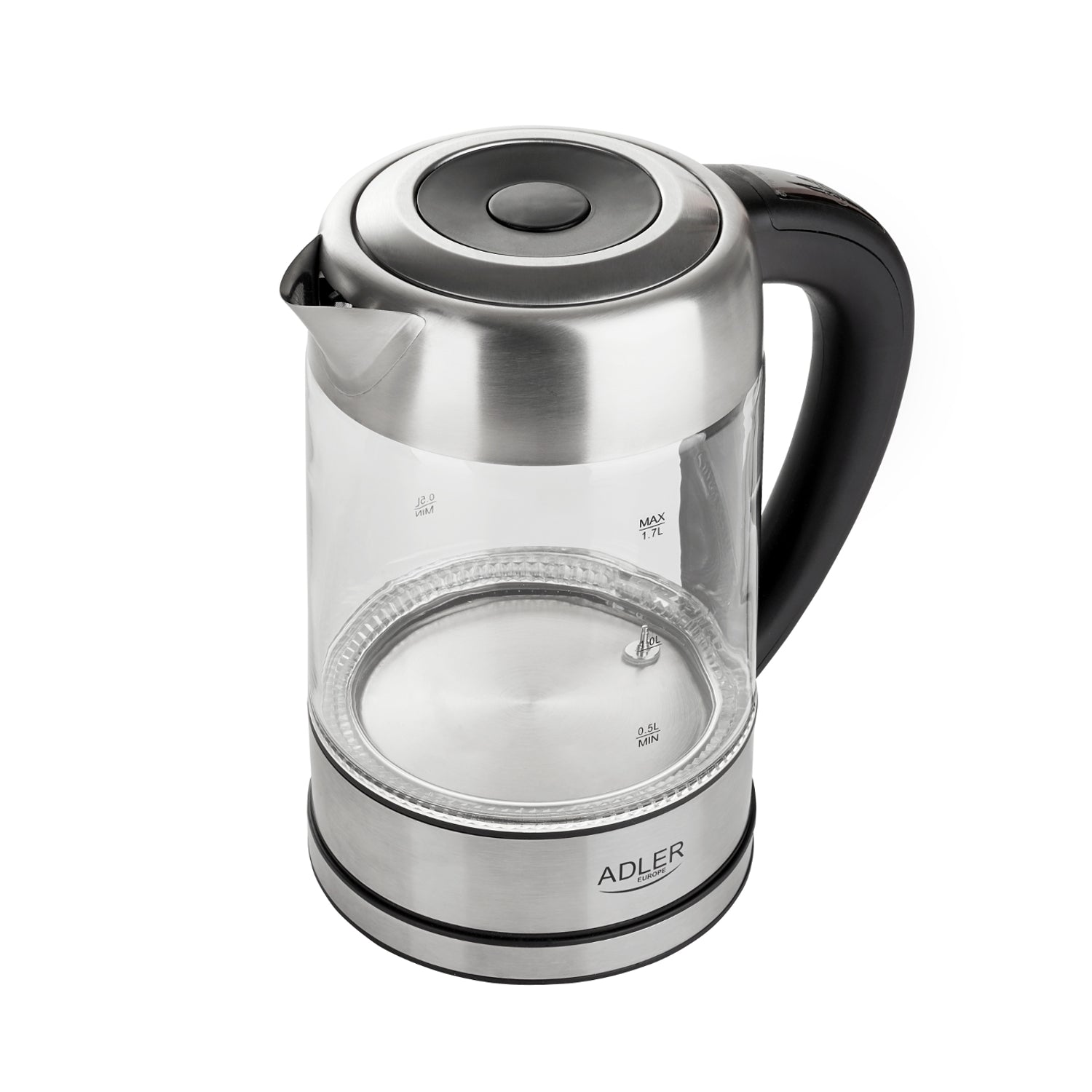 Világító üveg vízforraló 1.7L hőmérséklet-szabályozóval Adler AD 1247 ÚJ