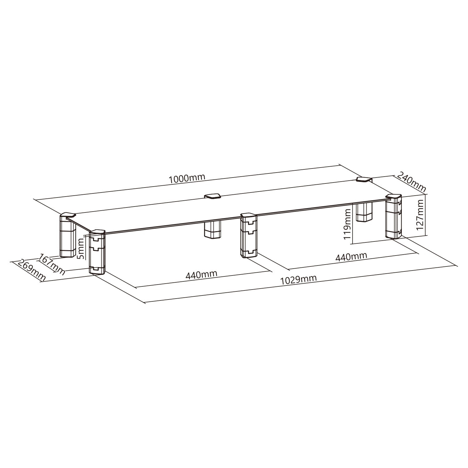 4 fokozatban állítható magasságú: 34, 64, 94 és 124 mm, lehetővé teszi a képernyők szemmagasságba állítását, kényelmes és egészséges munkakörnyezetet teremtve.