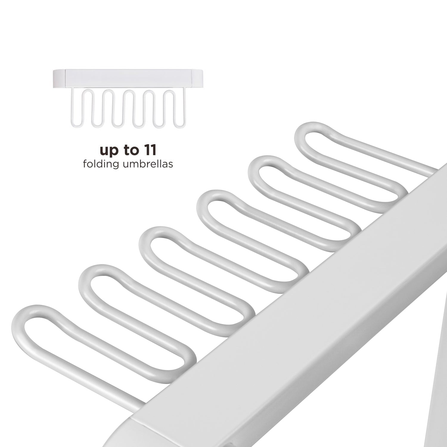 A speciálisan kialakított akasztó lehetővé teszi, hogy esernyőit mindkét oldalra felakaszthassa. Ez hatékony megoldás mind az összecsukható esernyők, mind a hosszú rudakon lévő esernyők elhelyezésére.