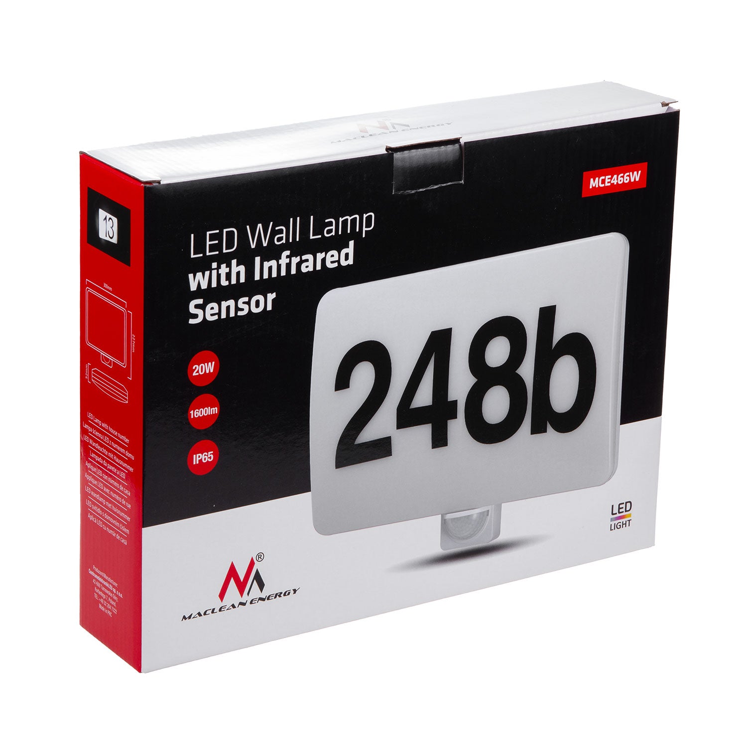 Maclean LED lámpa, házszám, szürkület- és mozgásérzékelő, dimmelhető, 20W, IP65, semleges szín (4000K), 1600lm, MCE466 W