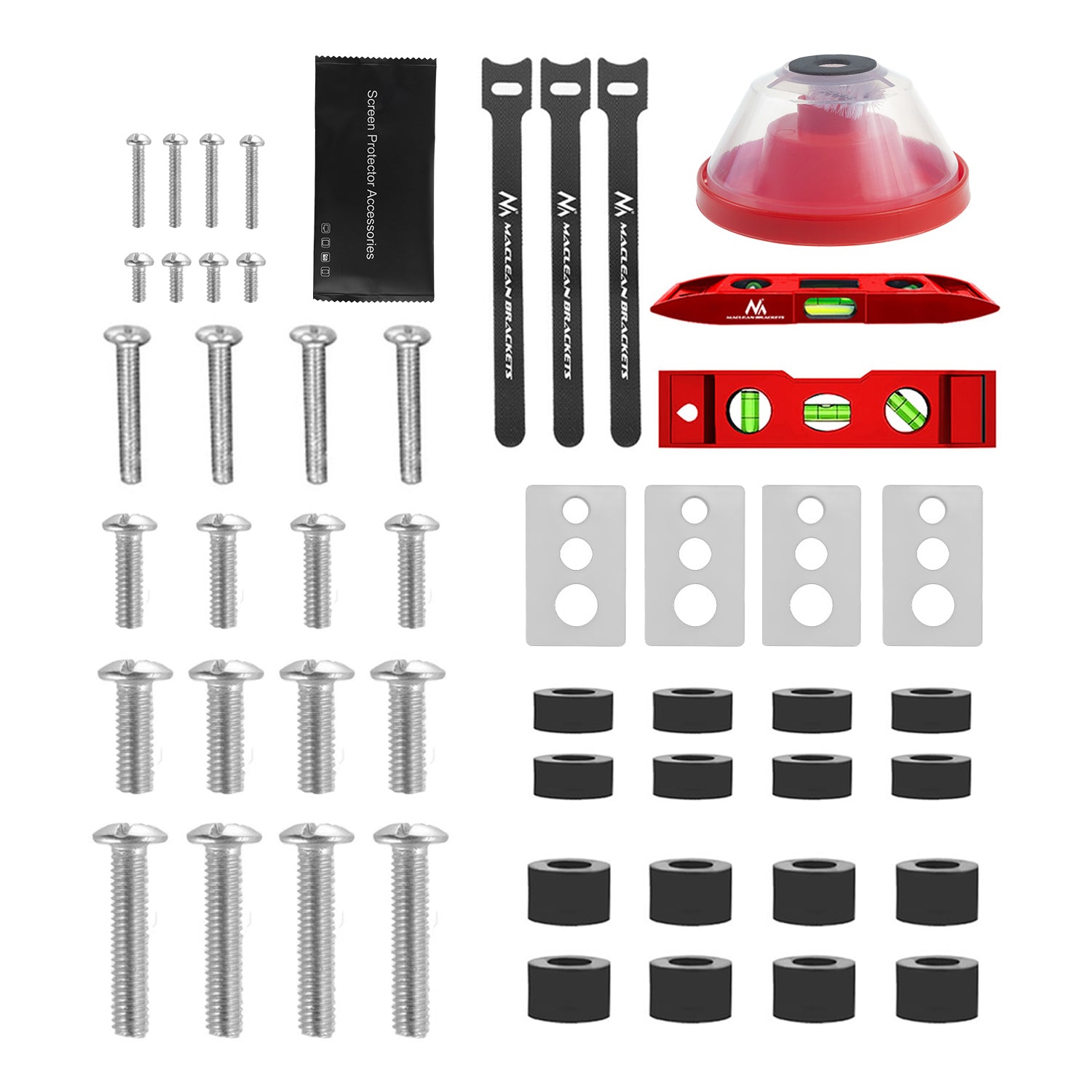 - Egy kompakt vízmérték megkönnyíti a fali tartó tökéletes szintezését. Segítségével biztos lehet benne, hogy a képernyő egyenletesen, billenésmentesen lesz felszerelve, így biztosítva a kényelmes megtekintést és a professzionális megjelenésű telepítést.