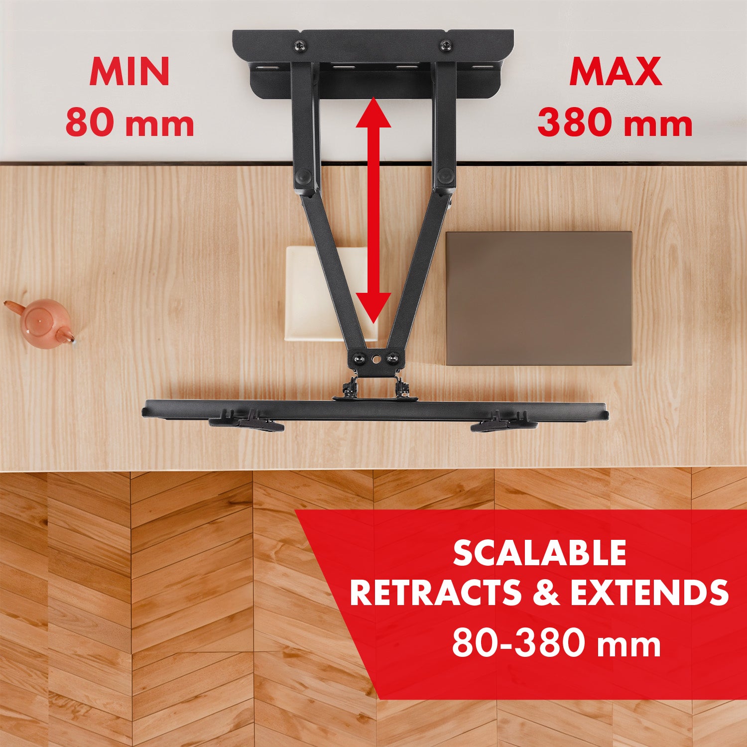 A konzol hosszú dupla karja, lehetővé teszi a TV széles körű elforgatását.