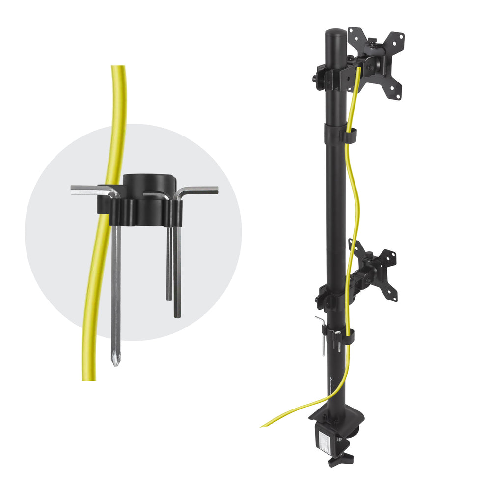 A tartót 2 különböző márkájú, legfeljebb 9 kg súlyú és 13-27" képernyőátlójú monitor rögzítésére tervezték.