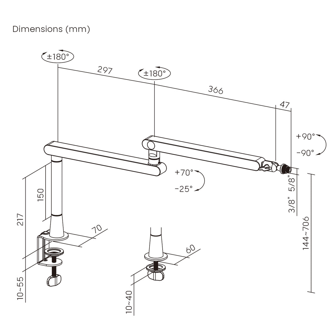 A konzol az asztallap szélére és a kábelnyílásba is rögzíthető. Az univerzális 3/8" és 5/8" meneteknek köszönhetően a tartó kompatibilis a piacon kapható legtöbb stúdiómikrofonnal. Az integrált kábelkezelő rendszer biztosítja a rendezettséget és fokozza az esztétikát.