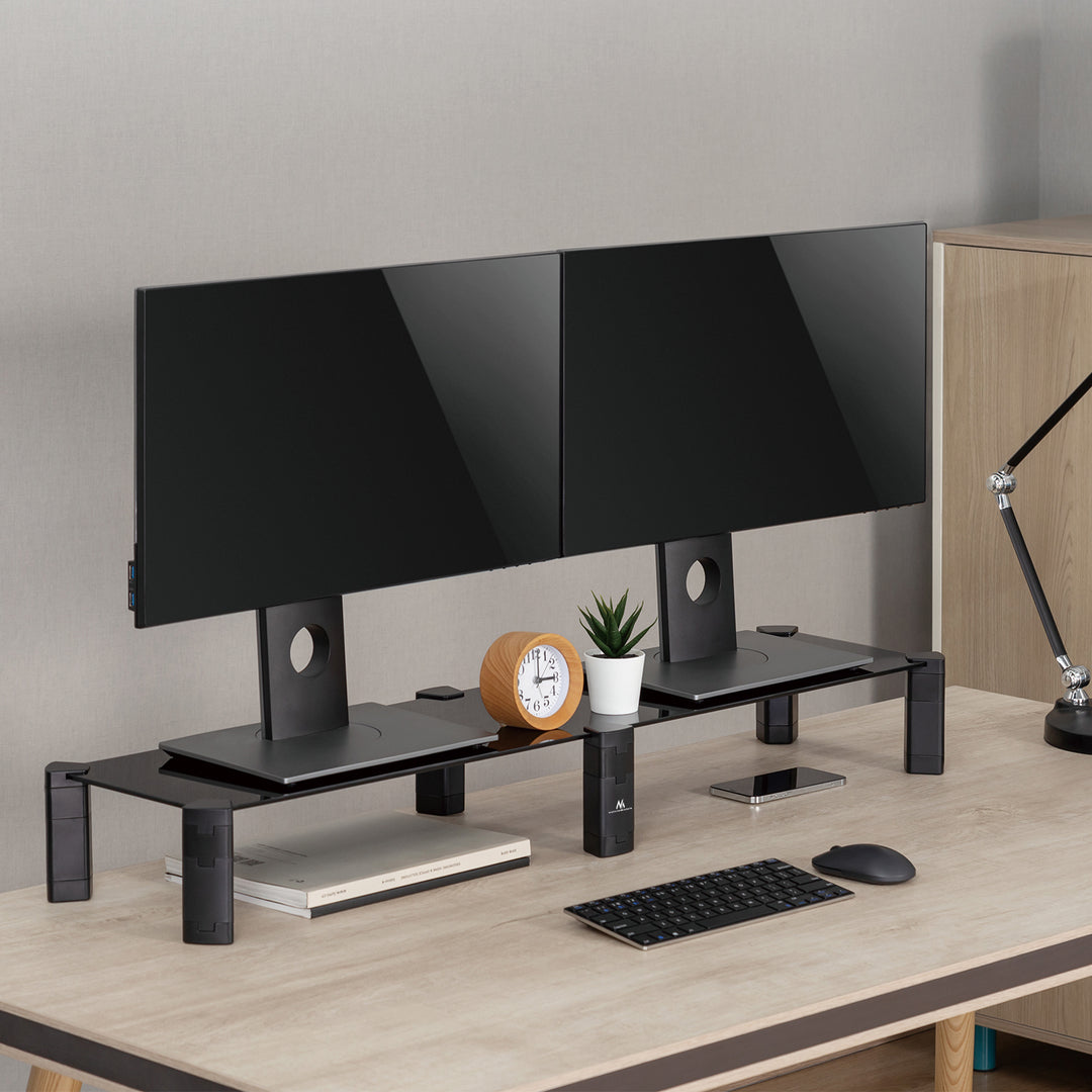 Állvány két monitorhoz - dupla Maclean, max. 20kg, edzett üveg, (1029x285x127mm), MC-936