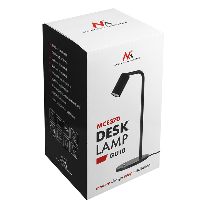 A Maclean MCE370 asztali lámpa ideális a munka, a tanulás vagy az olvasás helyszínének megvilágítására. A GU10 foglalatnak köszönhetően a felhasználónak lehetősége van arra, hogy az izzó típusát és teljesítményét saját igényeihez igazítsa, így a megfelelő hangulatot teremti meg a helyiségben.