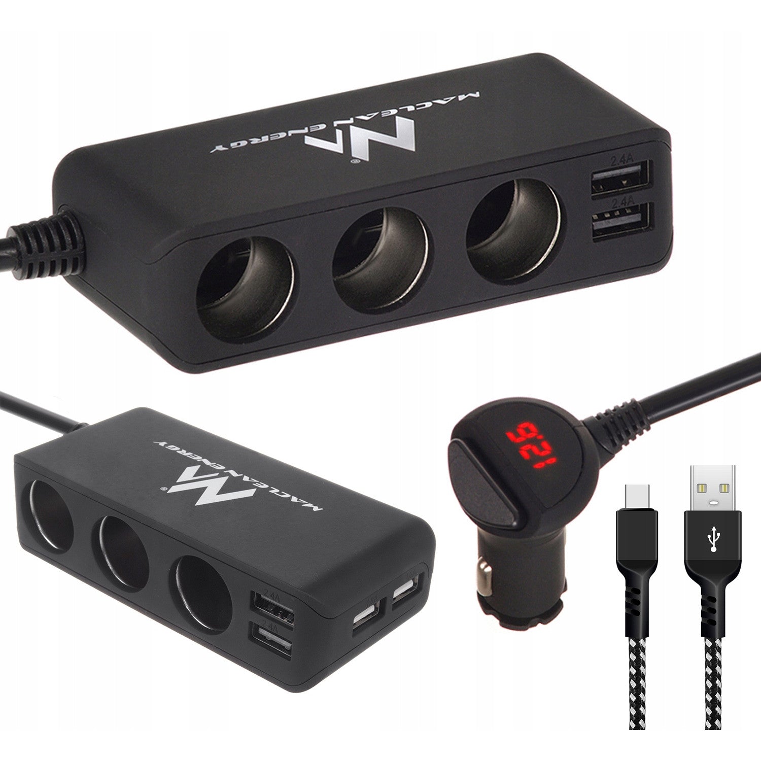 - Az adapter a szivargyújtónk kapacitását 1-ről 3 aljzatra növeli két további 2400mA és két 1000mA USB porttal
