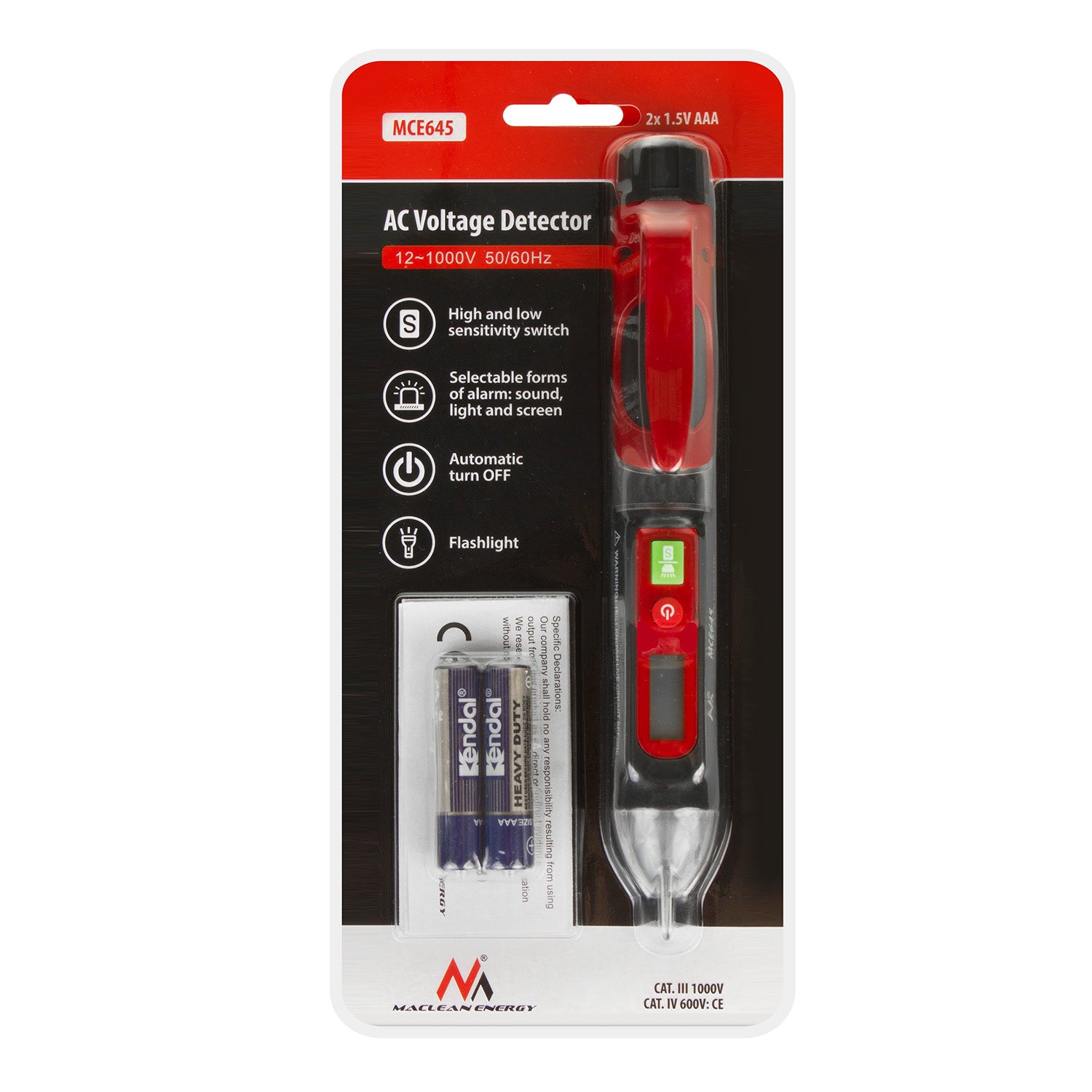 Maclean érintésmentes fázisfeszültség-érzékelő, érzékelő, megvilágított kijelző, beépített zseblámpa, 12-1000V, MCE645
