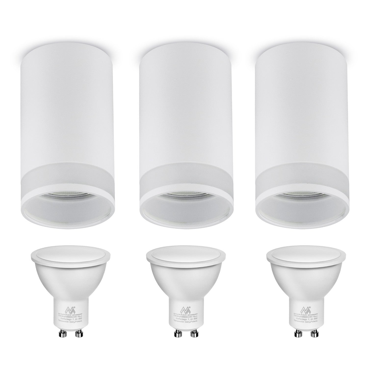 Maclean felszíni lámpatest / cső, spot, kerek, alumínium, GU10, 55x130mm, fehér, MCE361 W 3db + LED izzó GU10 7W Maclean Energy MCE437 WW meleg fehér 3000K, 220-240V~, 50/60Hz 3db