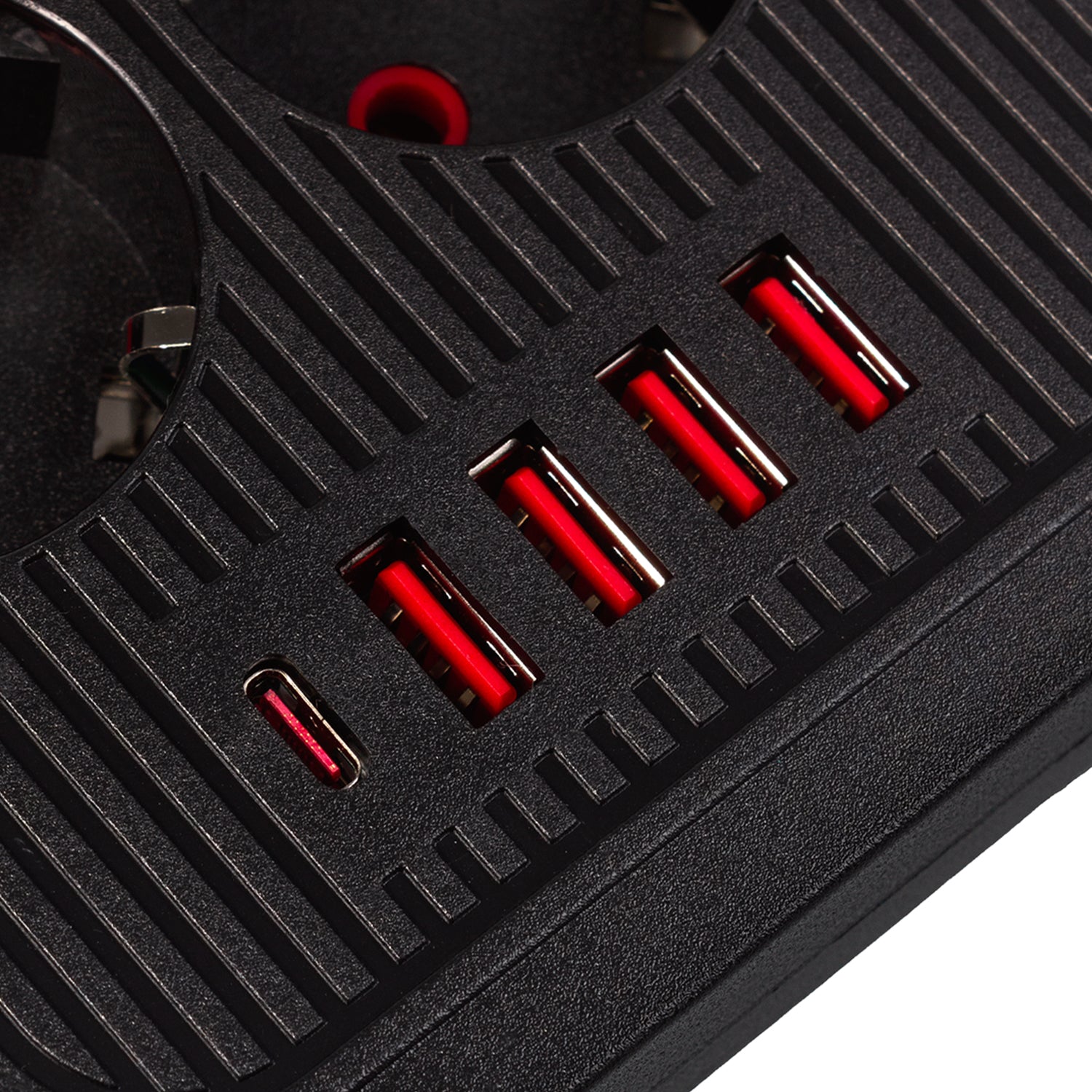 A két sorban elhelyezett hat hálózati aljzat lehetővé teszi, hogy egyszerre több eszközt is kényelmesen csatlakoztasson - a számítógépektől és monitoroktól kezdve a háztartási készülékeken át a tápegységekig vagy a világításig. Négy klasszikus USB-port és egy modern USB-C port lehetővé teszi okostelefonok, táblagépek, fejhallgatók és egyéb kiegészítők töltését. Ez az ideális megoldás a modern technológia felhasználói számára, akiknek egy helyen, univerzális áramforrásra van szükségük.