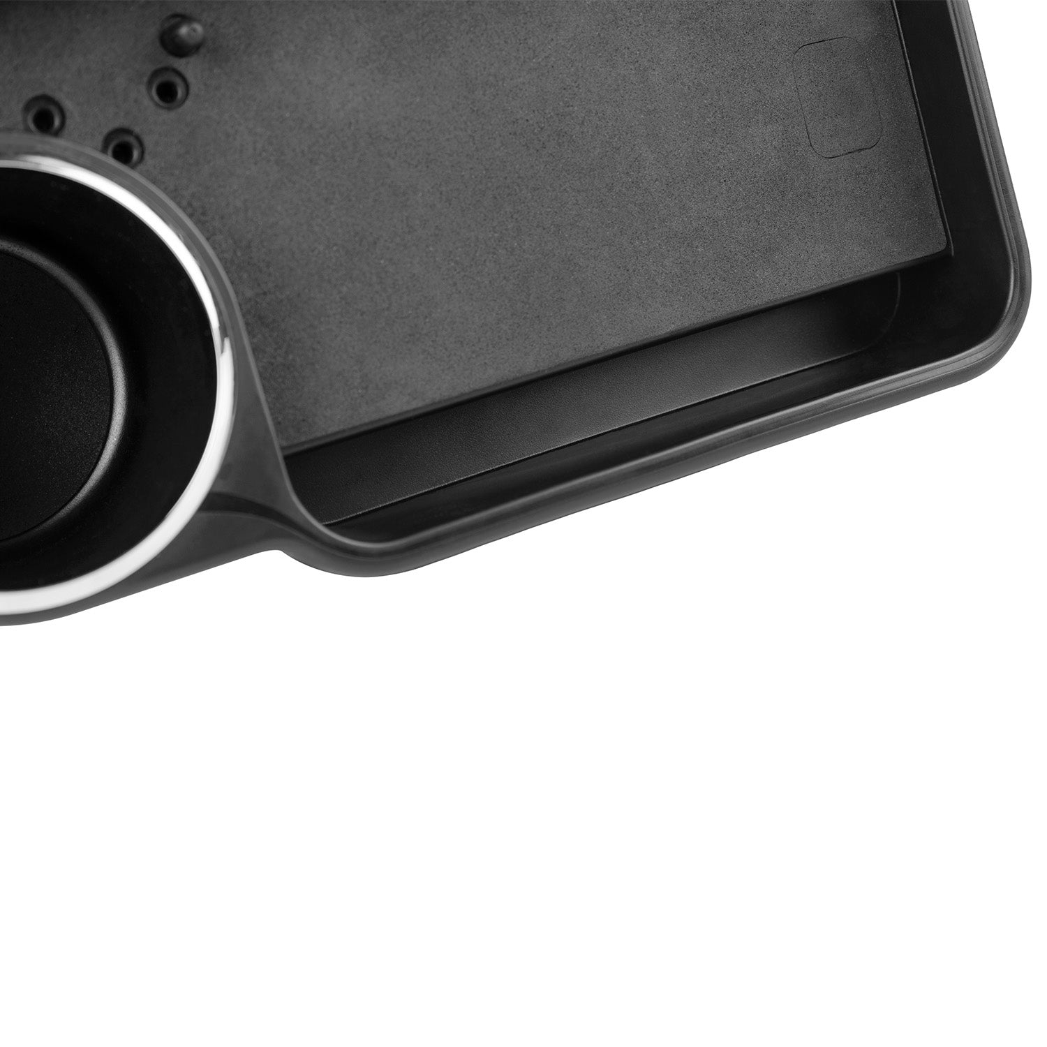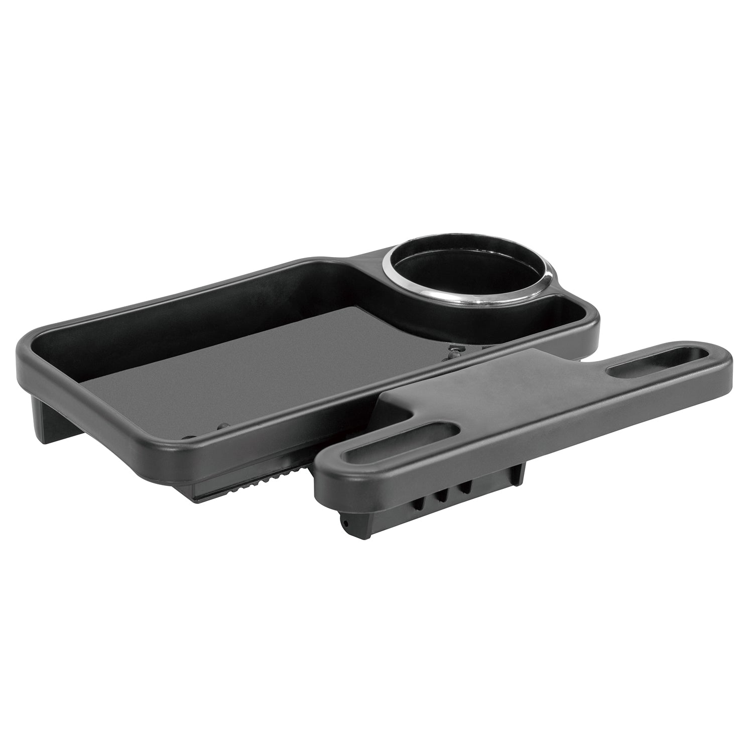 Az ülés fejtámlájához rögzíthető, összecsukható állvány nemcsak a hosszú utazásokhoz nyújt kényelmes megoldást. Alkalmas rágcsálnivalók, italok, játékok és különféle apróságok tárolására.
