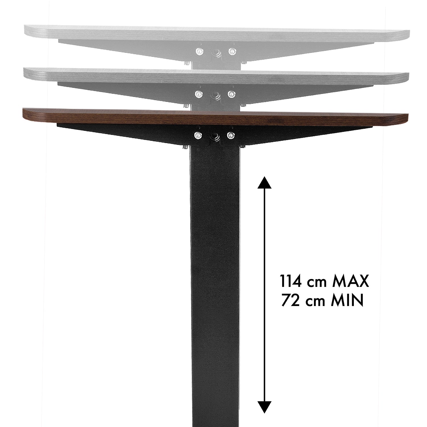 Az állítható magasságnak köszönhetően az íróasztal felső pozíciójának magasságát az Ön igényeihez igazíthatja. Az íróasztal álló és ülő helyzetben is használható.