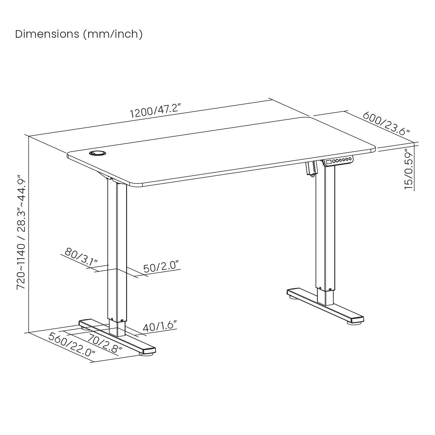 A 120 x 60 cm-es nagyméretű laptábla elegendő helyet biztosít egy laptop, egy monitor, irodai kiegészítők és számítógépes perifériák, például billentyűzet, egér stb. számára.