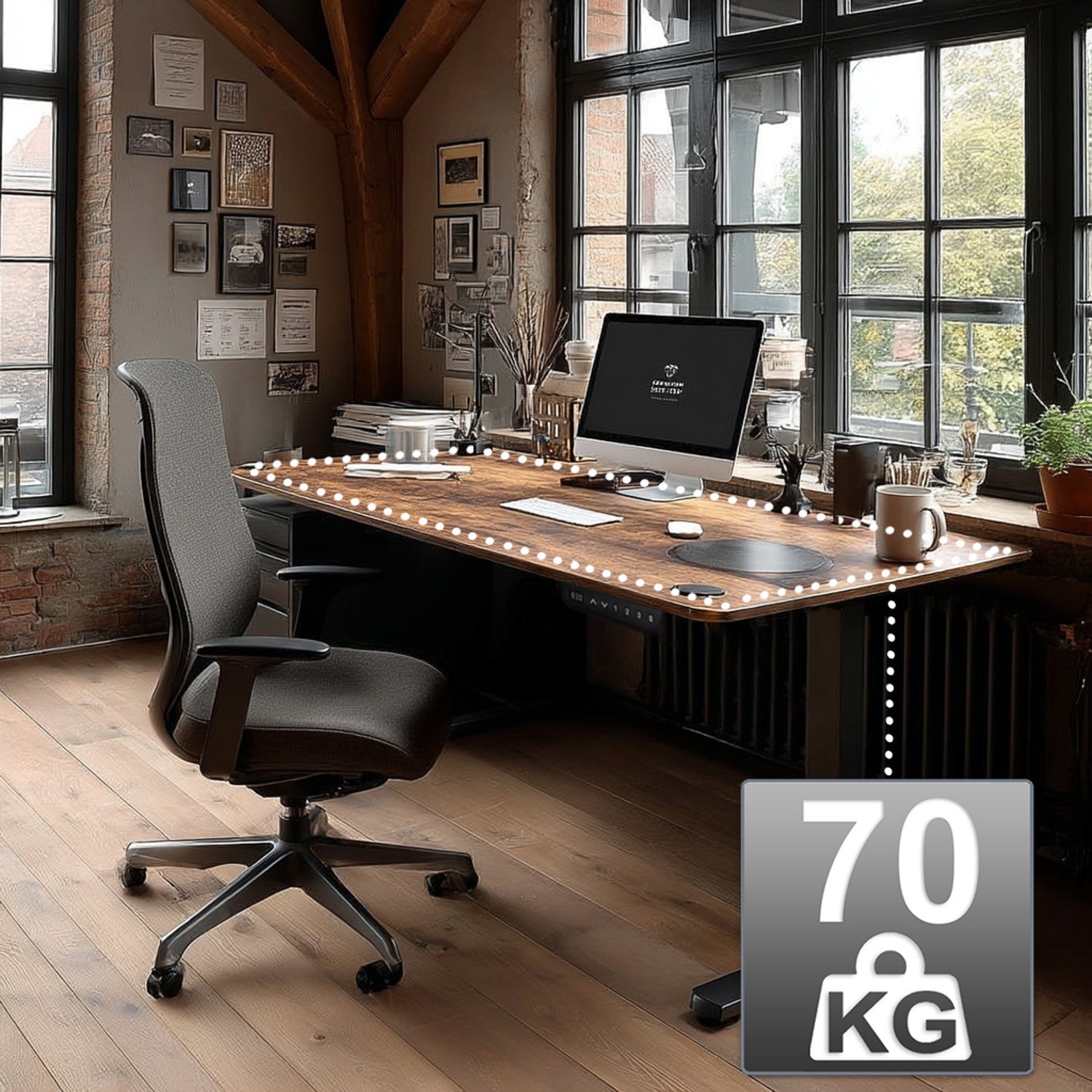 Az elektromos magasságállítással ellátott modern íróasztal optimális ergonómiát biztosít a munkahelyen.